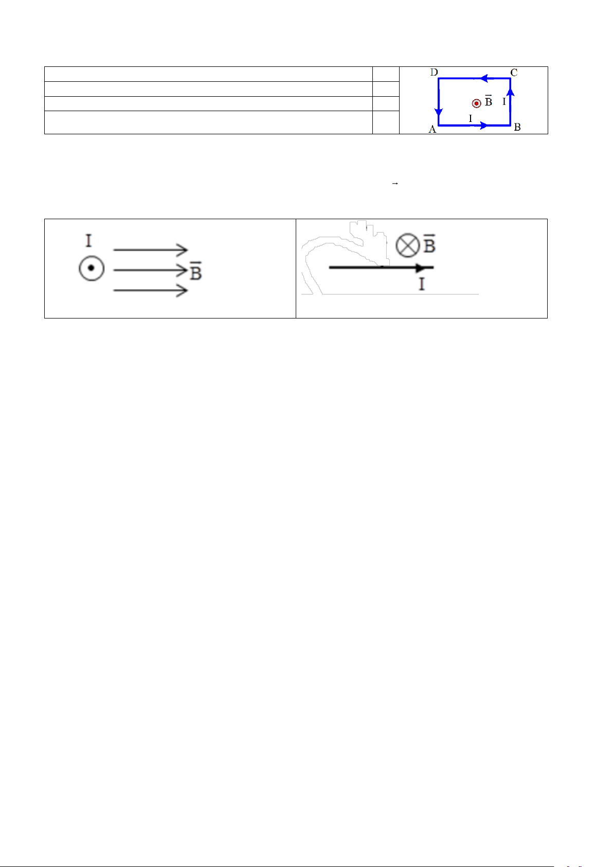 Câu 4. Một khung dây dần hình chữ nhật ABCD như hình, có tiết diện S, có dòng điện cường độ I chạy qua,