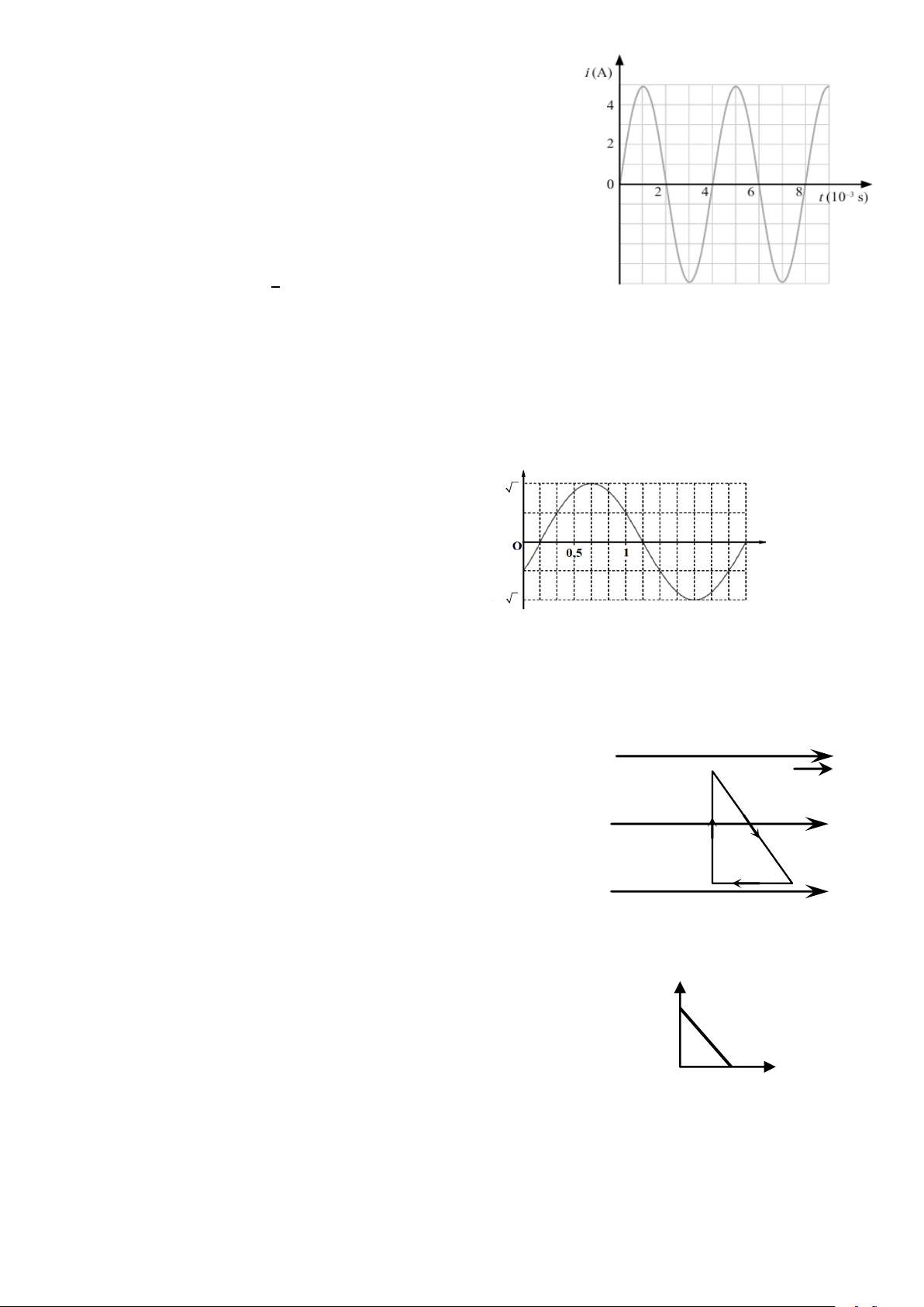 Câu 3. Dòng điện do một máy phát điện tạo ra có cường độ biến theo thời gian được cho trong hình bên.