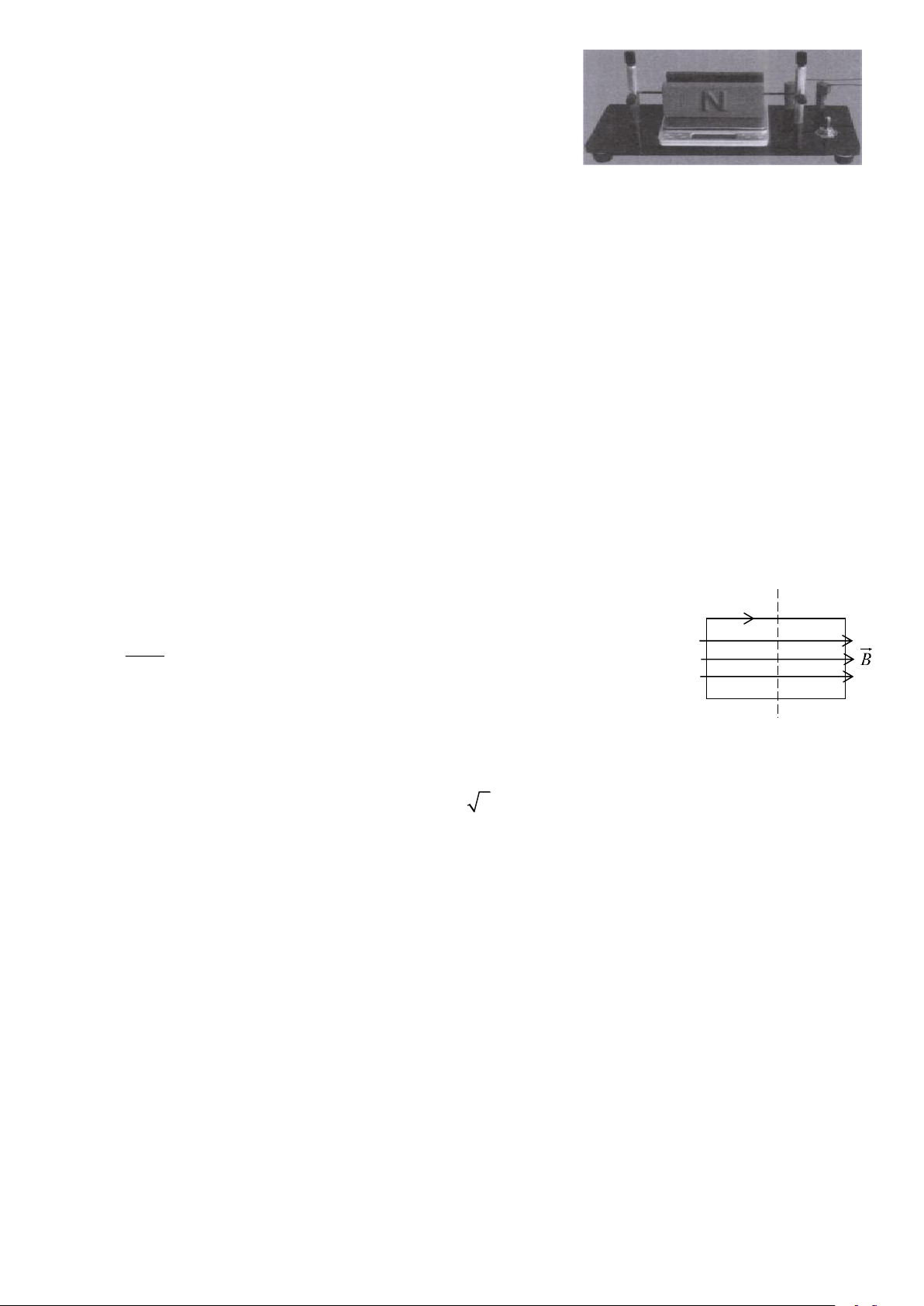 Câu 2: Trong bài thực hành đo cảm ứng từ bằng cân “dòng điện”. Nếu khung dây có 200 vòng, cạnh khung