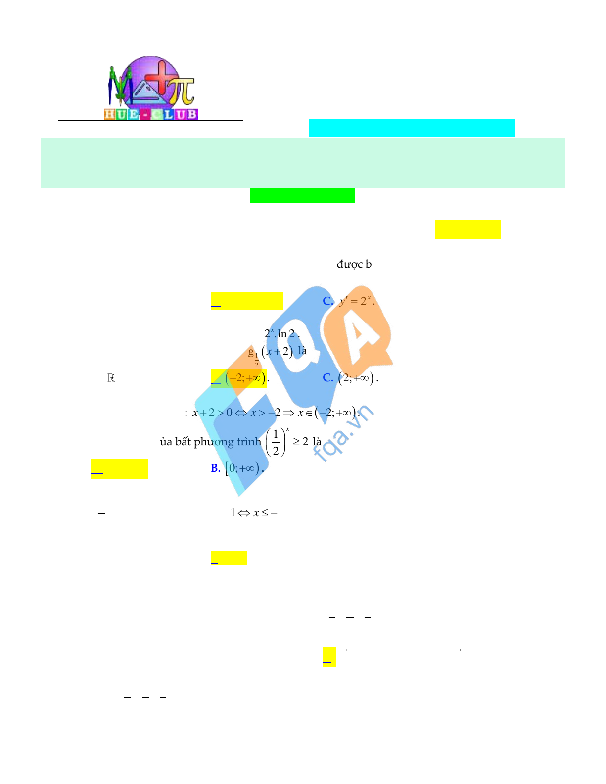 Câu 3: Tập xác định của hàm số y log x 2 là 1 2 A. .