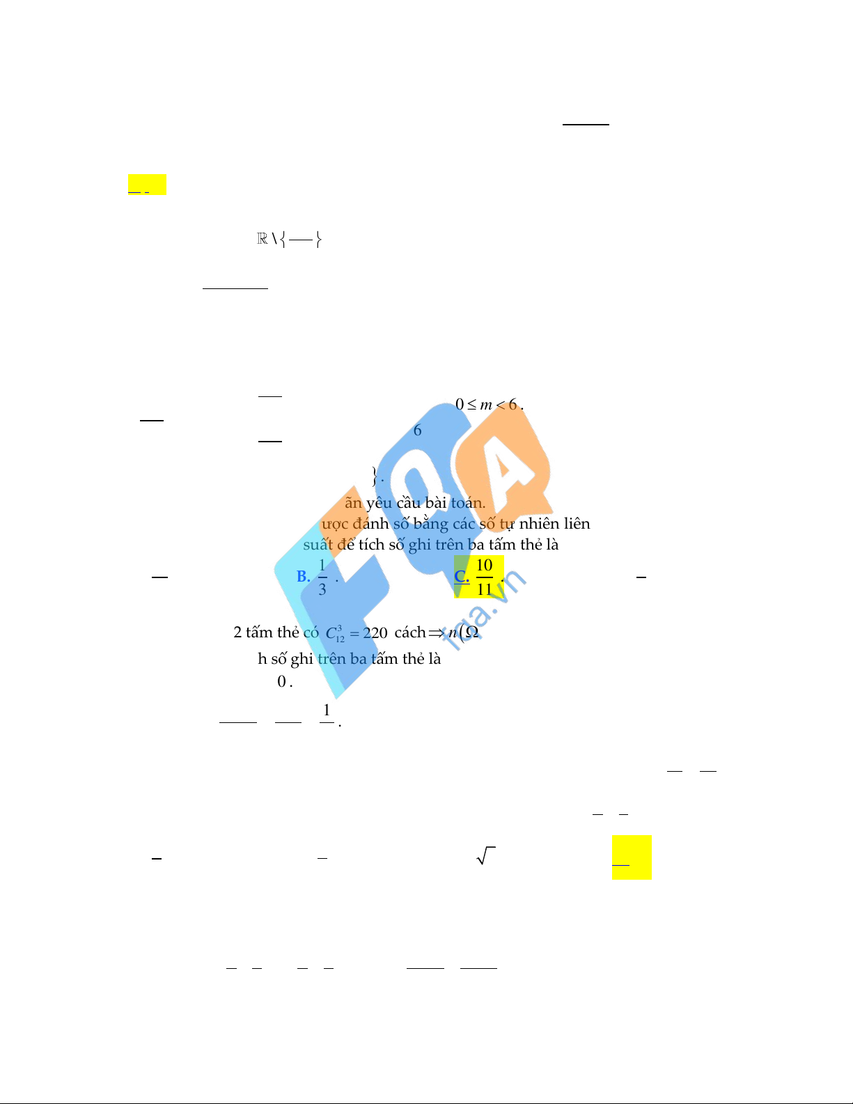 nhiên ra ba tấm thẻ. Xác suất để tích số ghi trên ba tấm thẻ là một số chẵn bằng 11 1 10 1 A. . B. . C. . D. . 12 3 11 2 c c