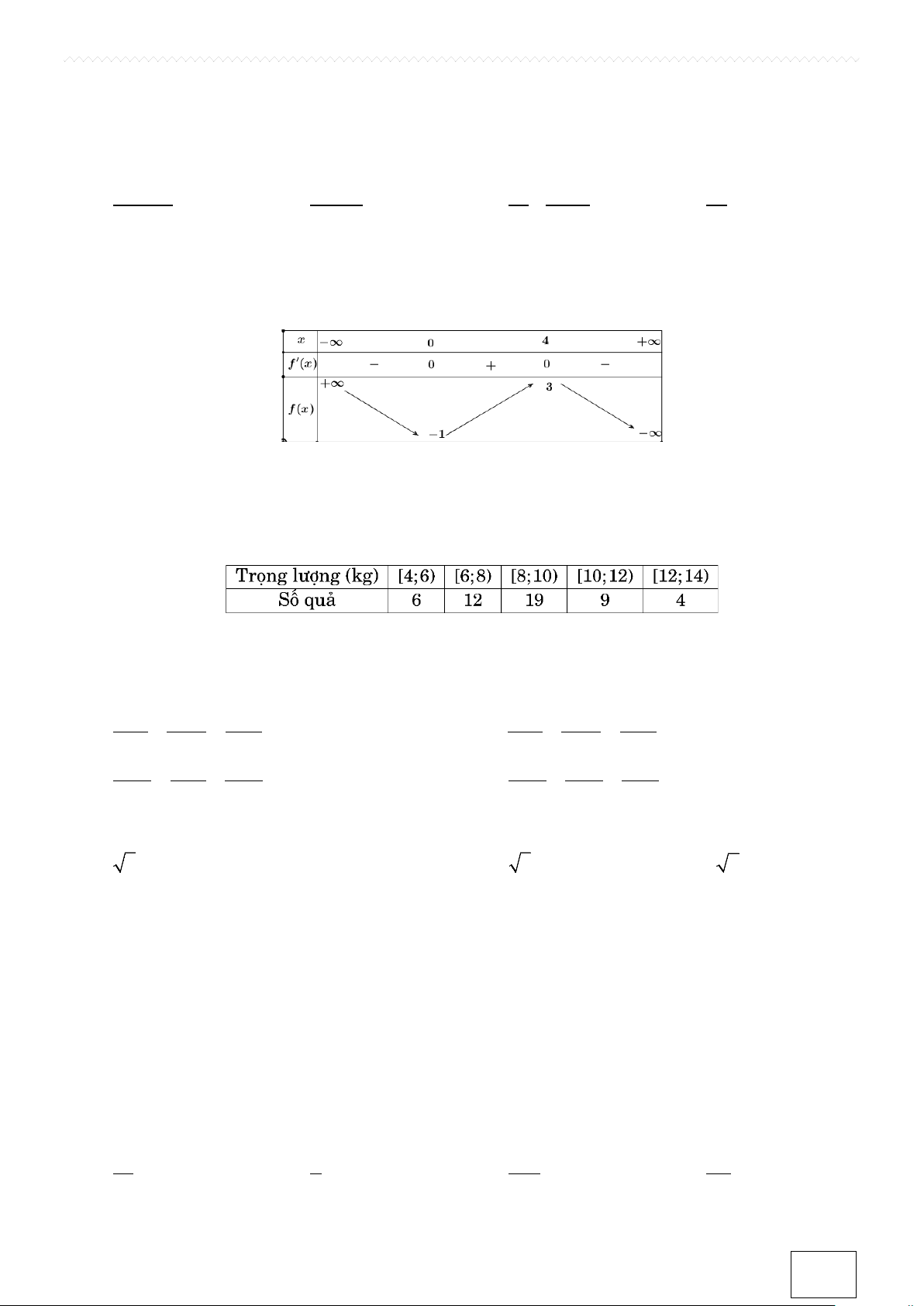 Câu 5. Khảo sát trọng lượng của một số quả mít được trồng trong một nông trường ta có số liệu sau