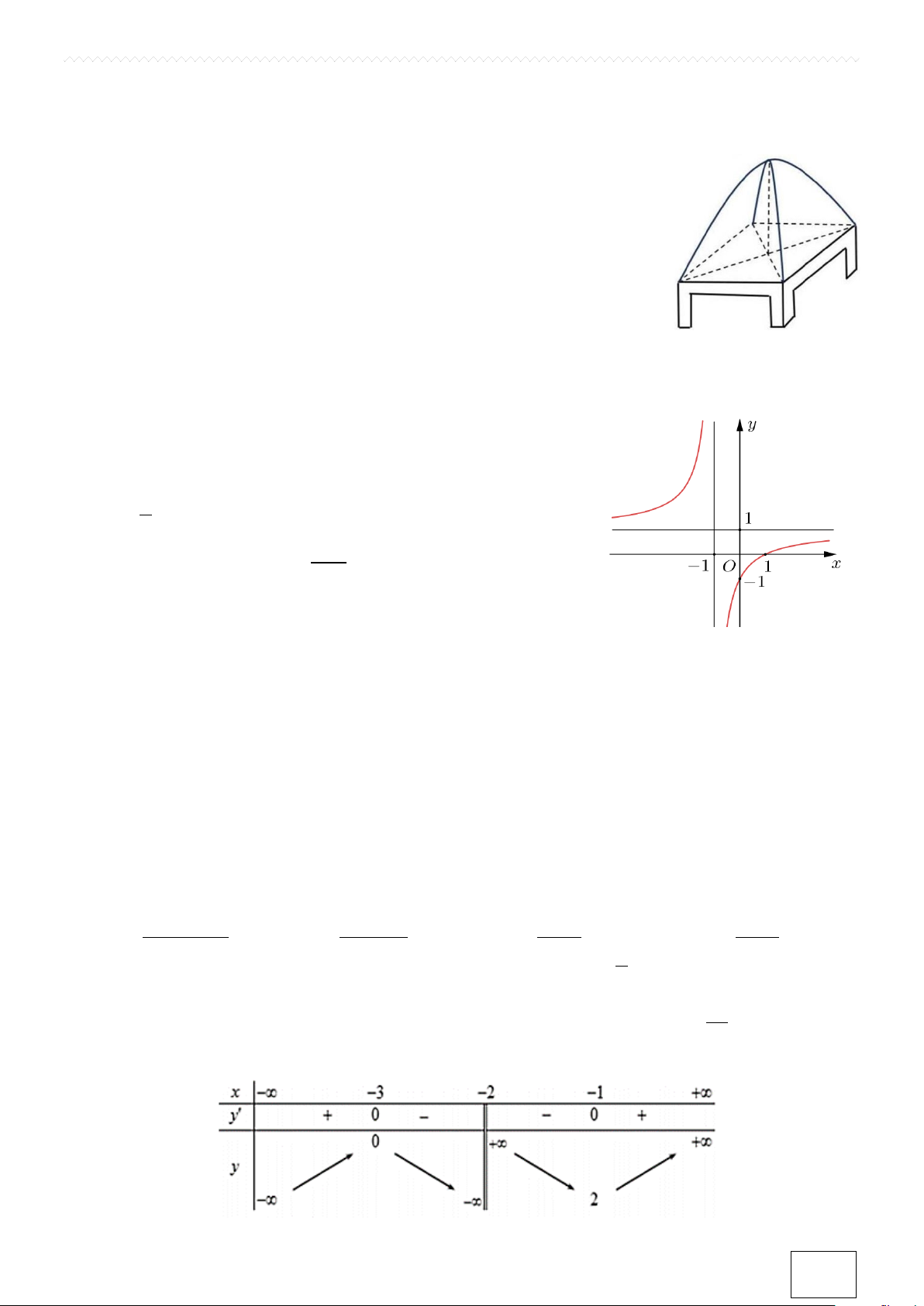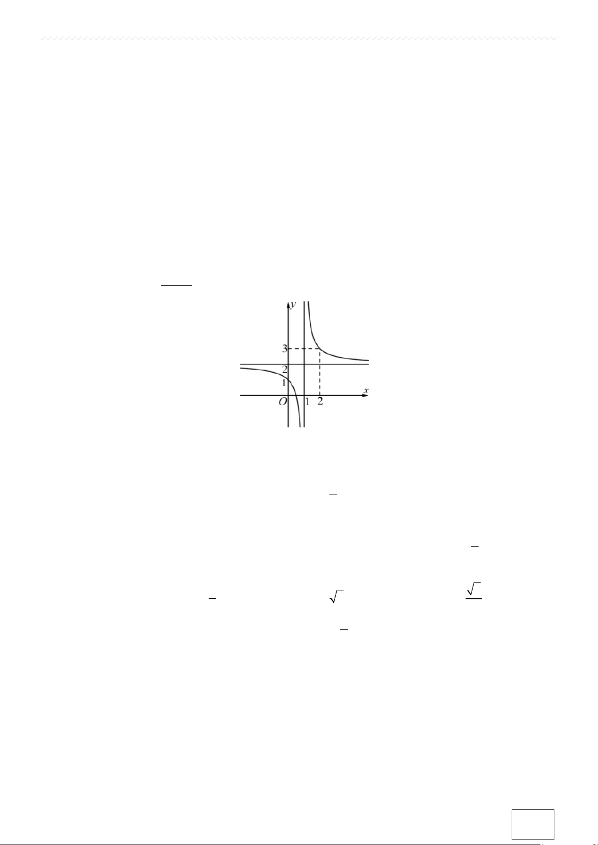 Câu 4. Đường thẳng 2y +1= 0 là tiệm cận ngang của đồ thị hàm số nào sau đây? 2 2 A. 3− x y + + + + = . B. x x 1 y = . C. x 1 y = . D. 2x 1 y = . 2 2x − 3x +1 1− 2x 2x +1 1− x