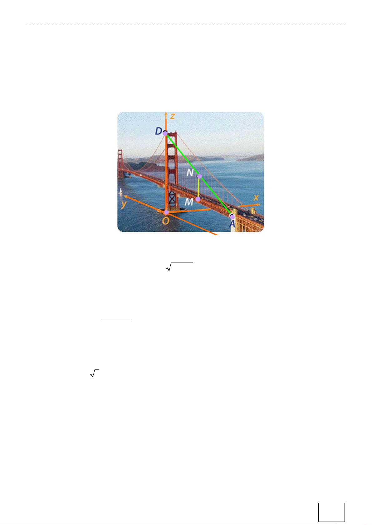 Câu 3. Cầu Cổng Vàng (The Golden Gate Bridge) ở Mỹ được gắn hệ trục toạ độ Oxyz với O là bệ của