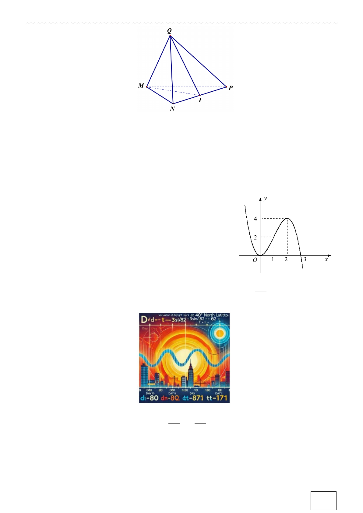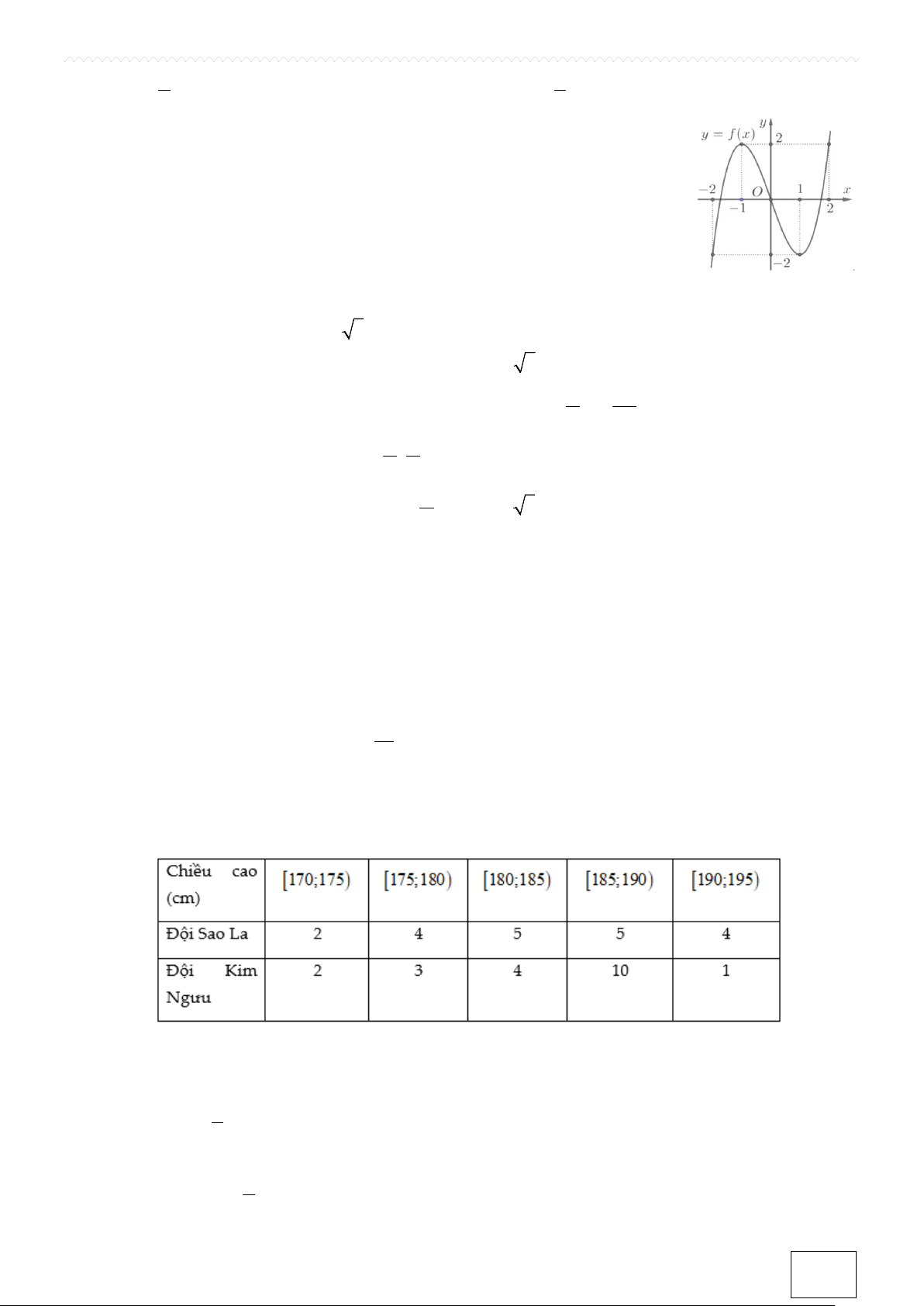 Câu 1. Lát cắt của một vùng đất được mô hình hóa bởi hàm bậc ba y = f (x) có đồ thị như hình vẽ dưới