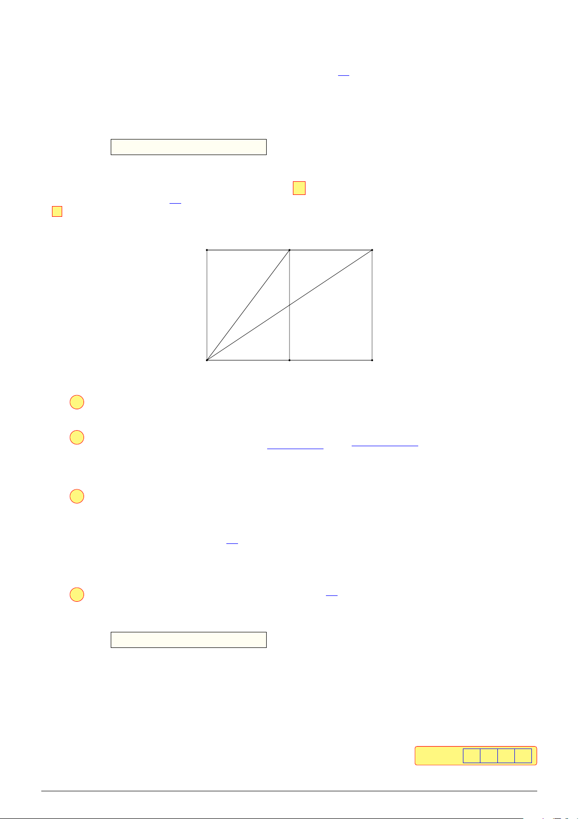 Câu 2. Cho hình chữ nhật ABCD có cạnh AB = 4a, BC = 3a. # » # » # » # » # » a) AB − AD = BD. b AD + AB = 5a. √ # » # » # » # » c AB + 2AD = 2a 13. d) AB · AC = 20a2. Lời giải. C B F D A E # » # » # »