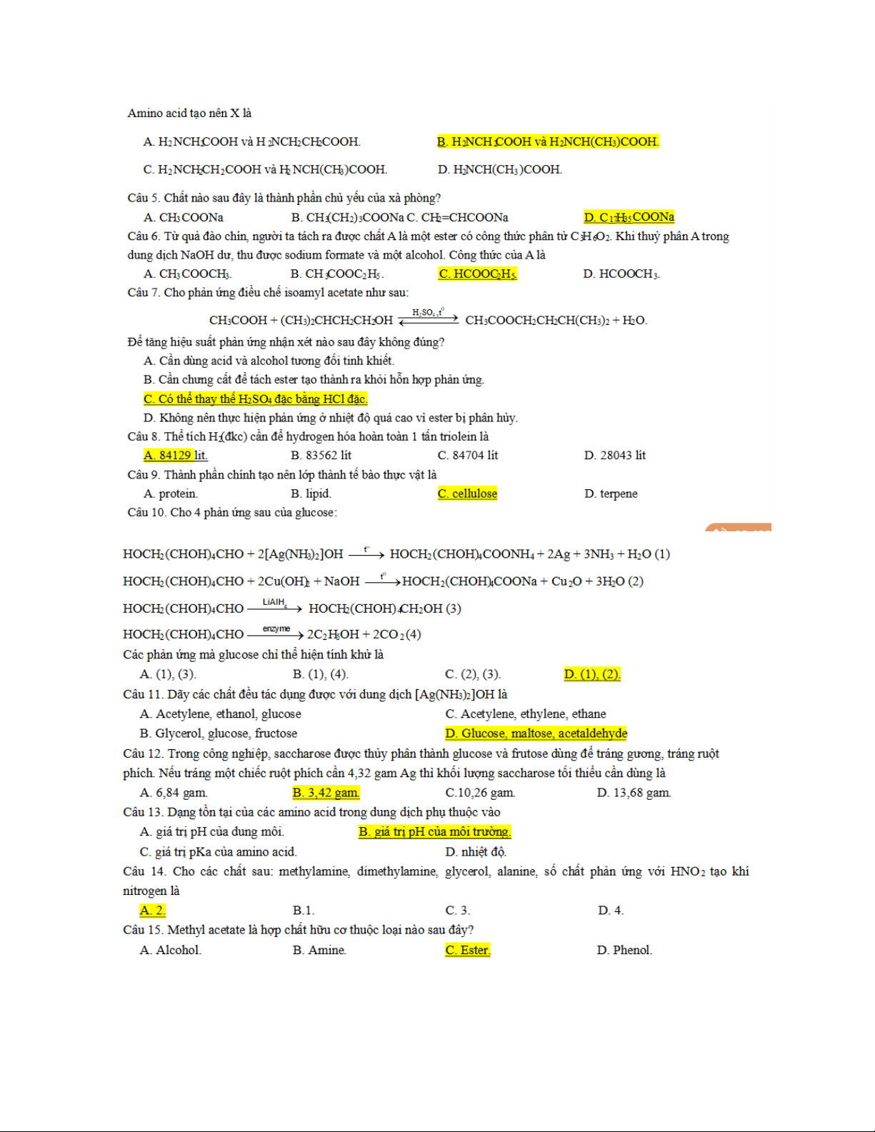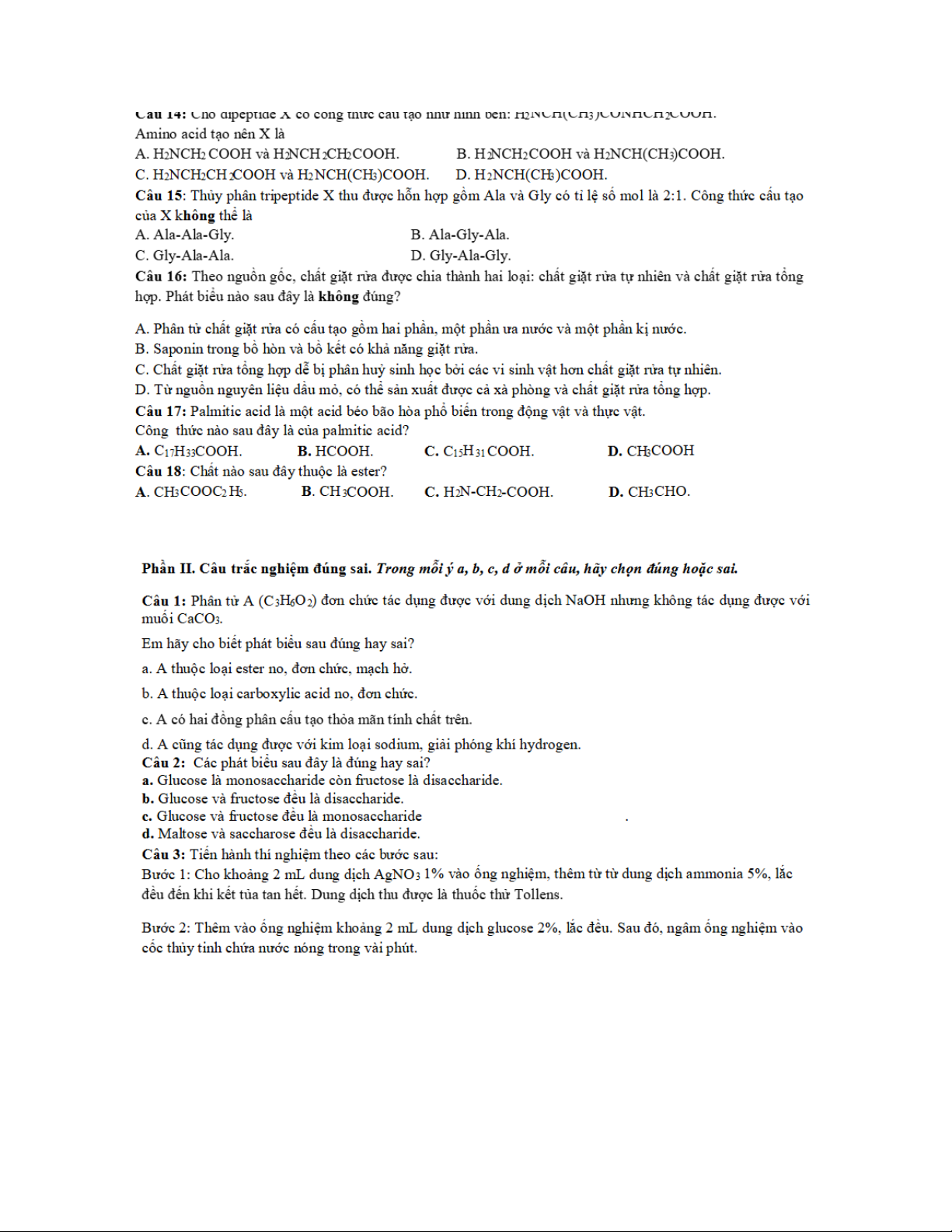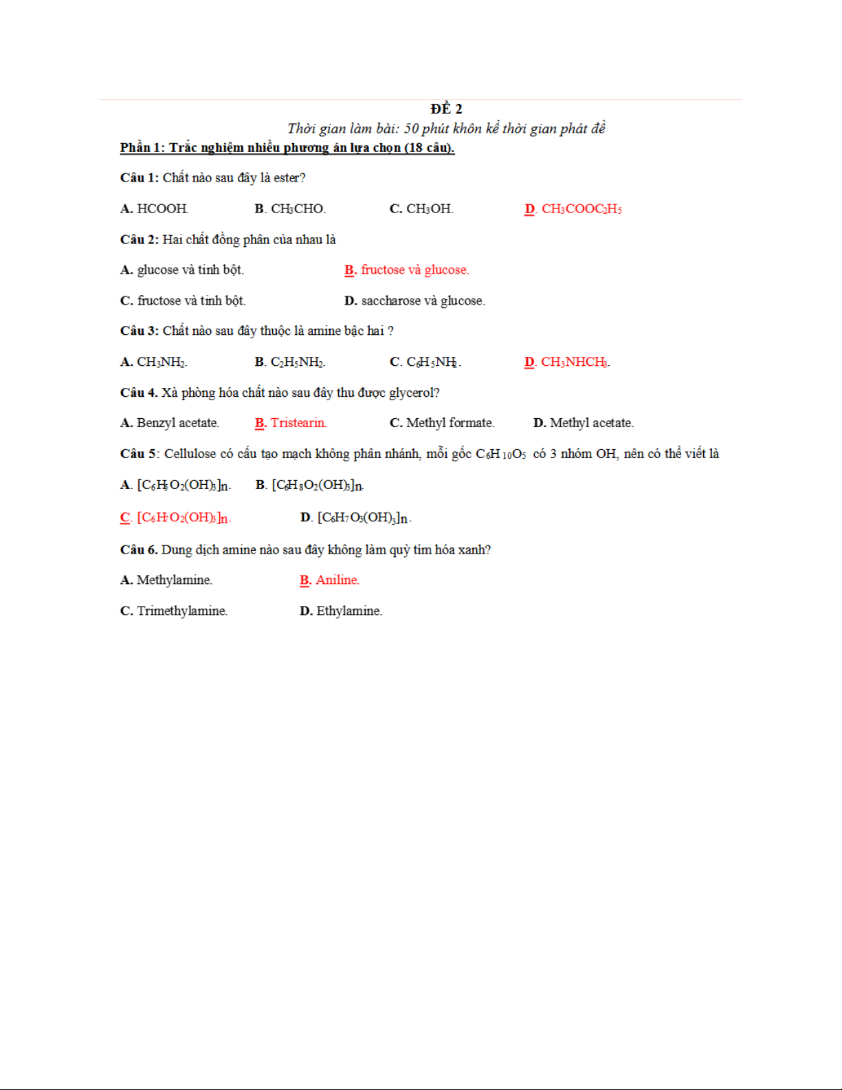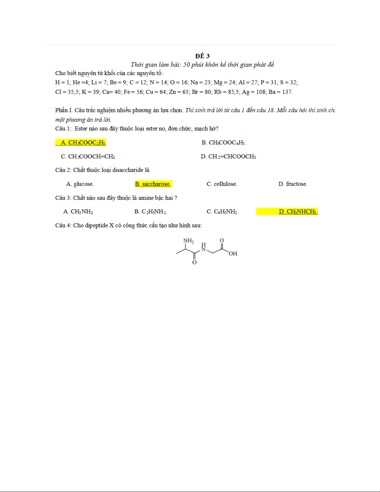 ĐỀ KIỂM TRA GIỮA KỲ 1 MÔN: HÓA HỌC 12 ĐỀ 1 HẾT