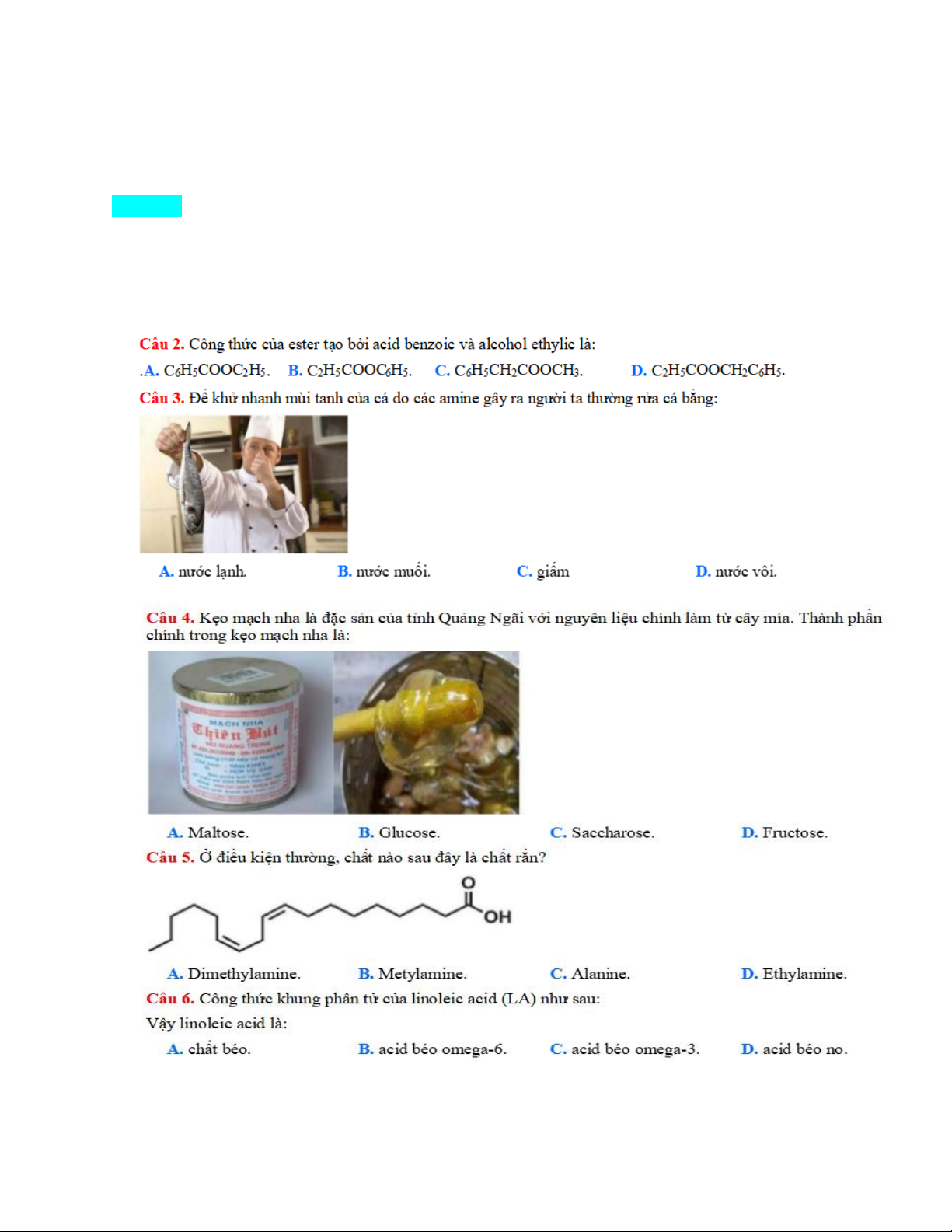 Câu 1. Hợp chất đường chiếm thành phần chủ yếu trong mật ong là: