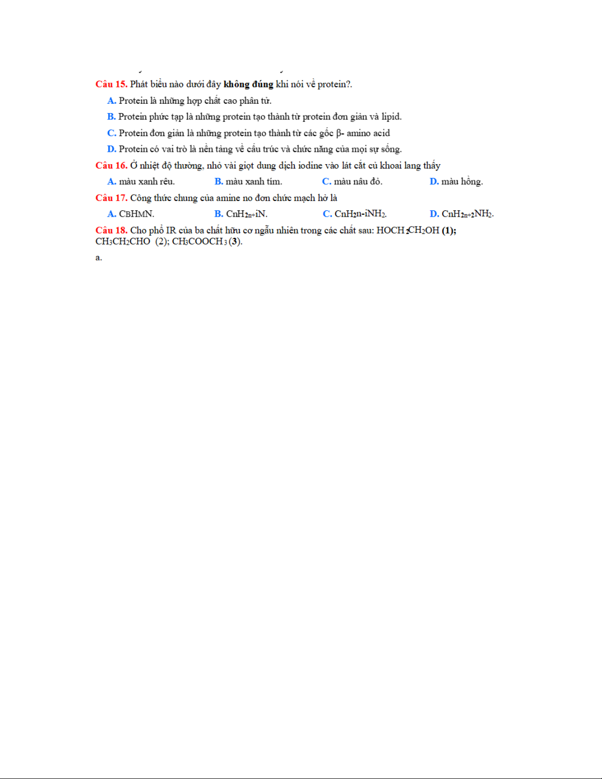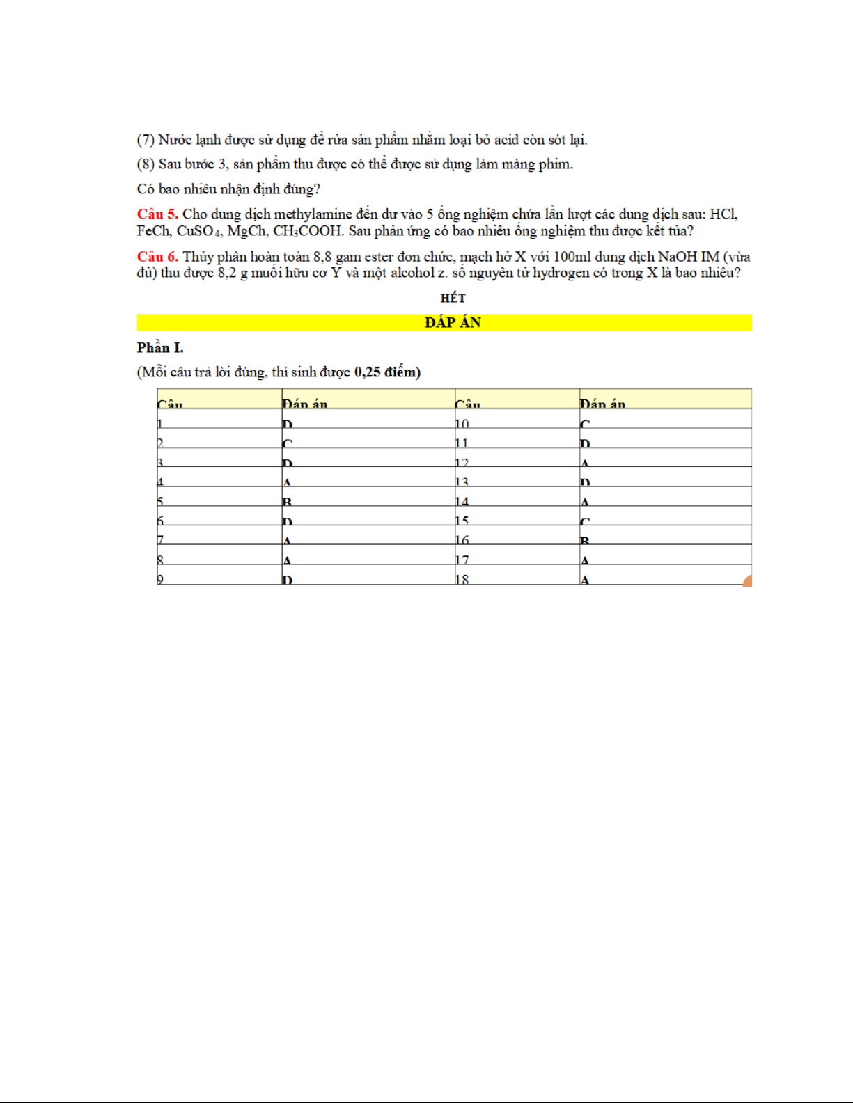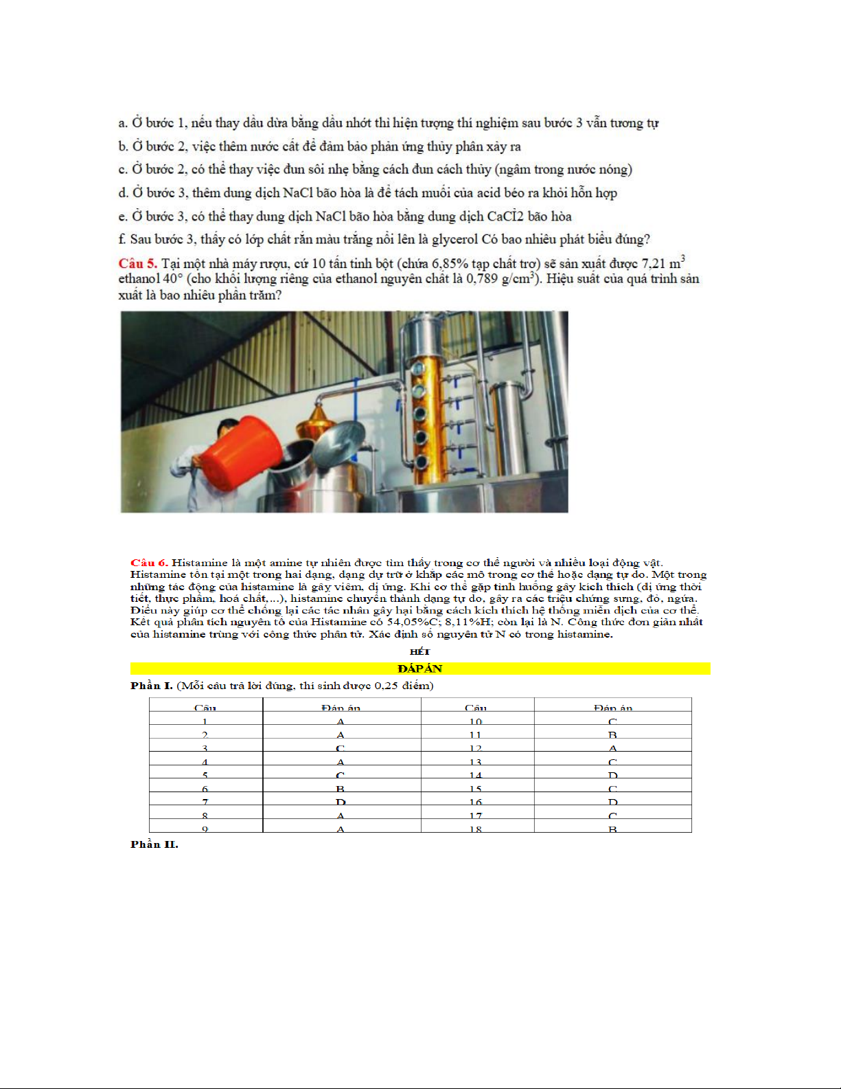 PHẦN I. Câu trắc nghiệm nhiều phương án lựa chọn. Thí sinh trả lời từ câu 1 dến câu 18. Mỗi