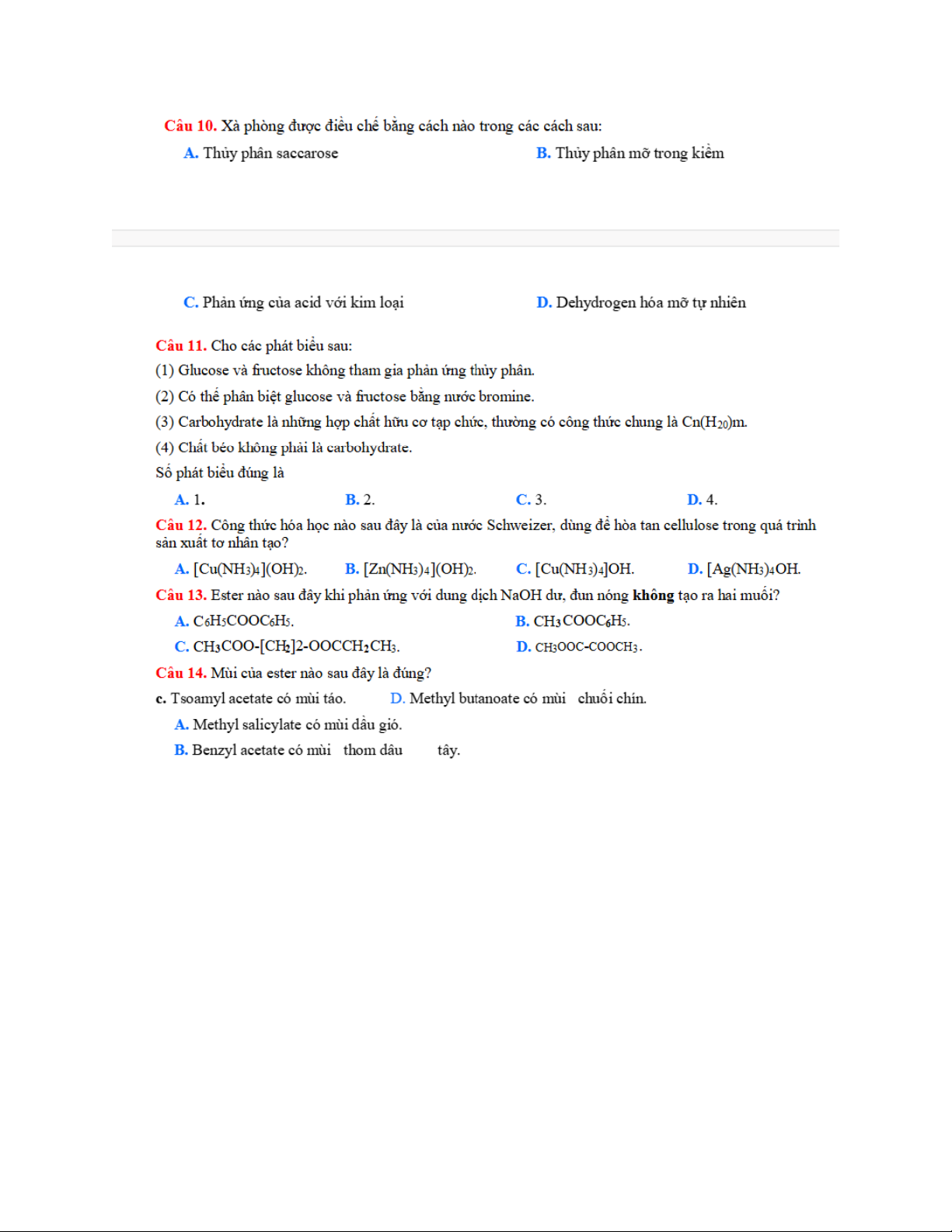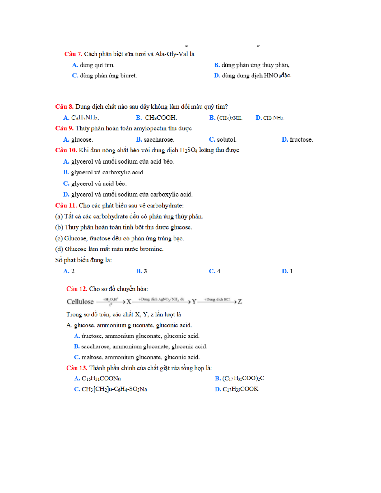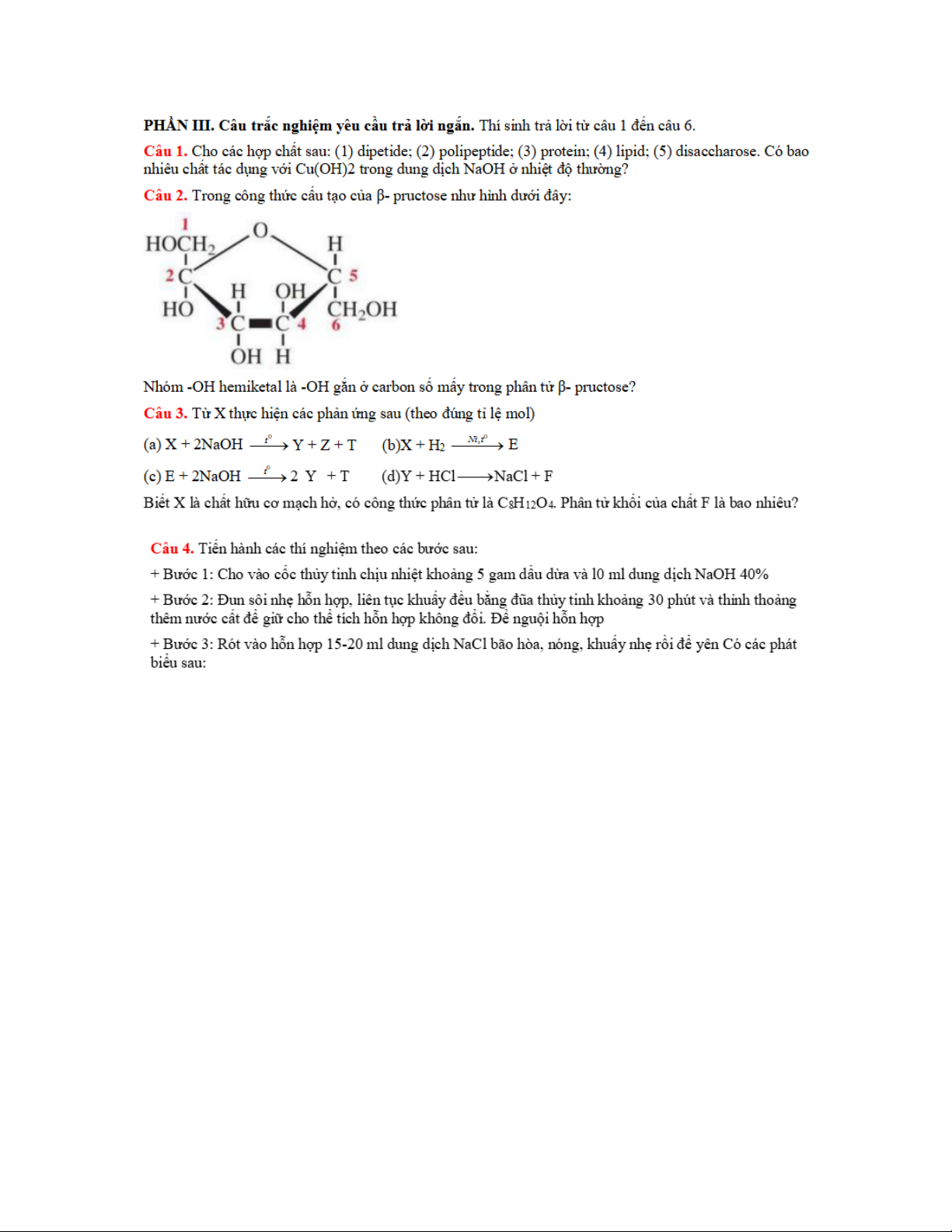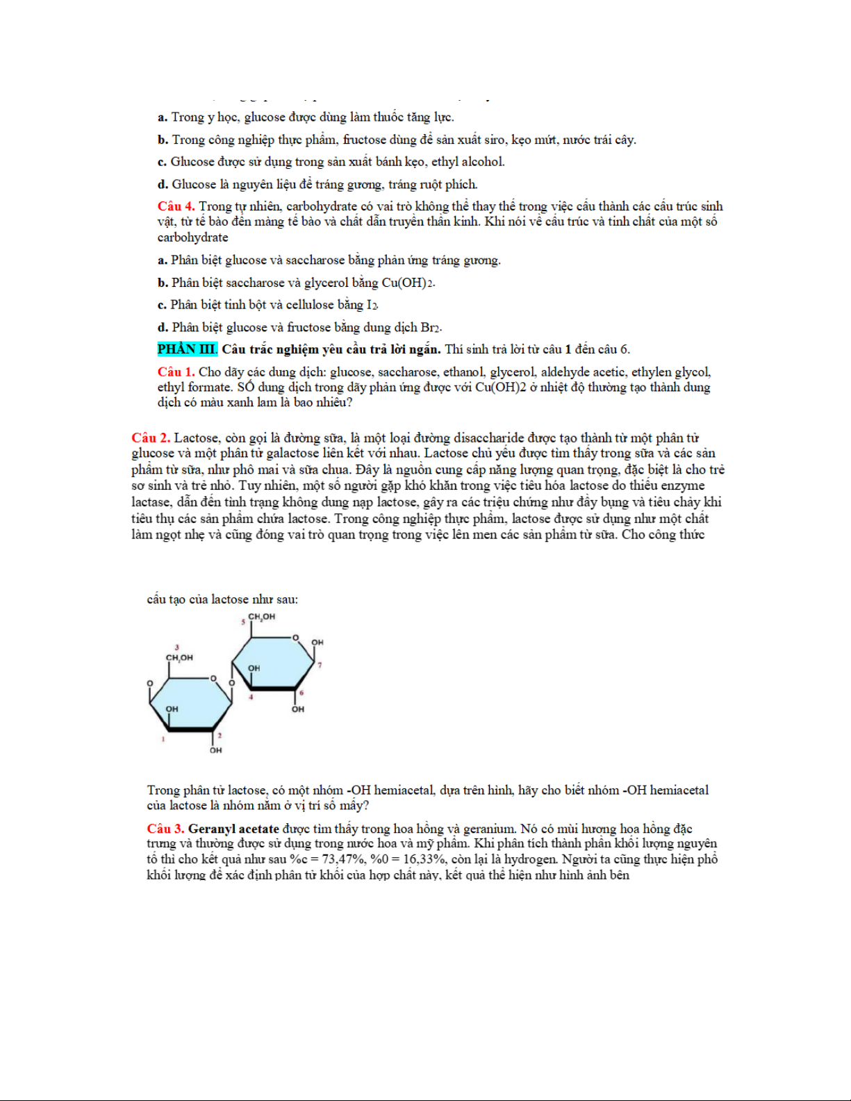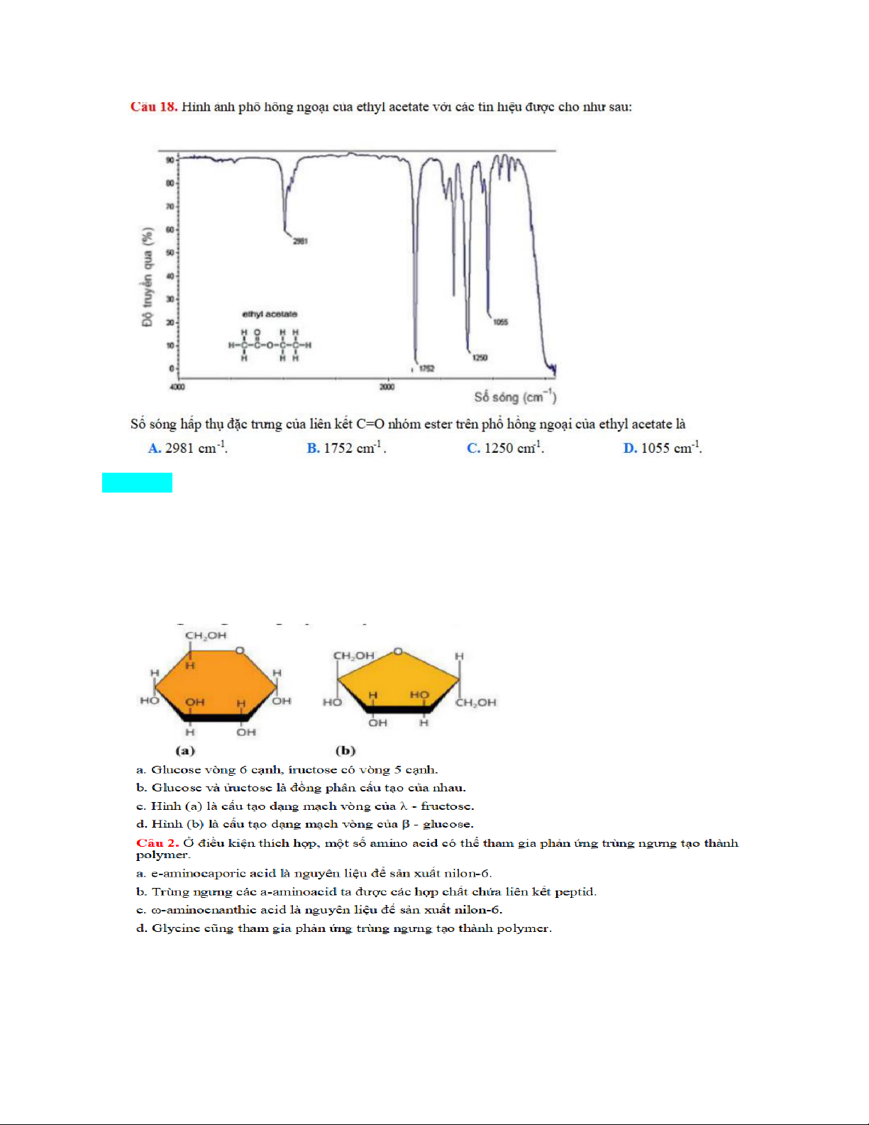 Câu 1. Glucose và ửuctose chủ yếu tồn tại dưới dạng mạch vòng, nhưng chúng có thể chuyển