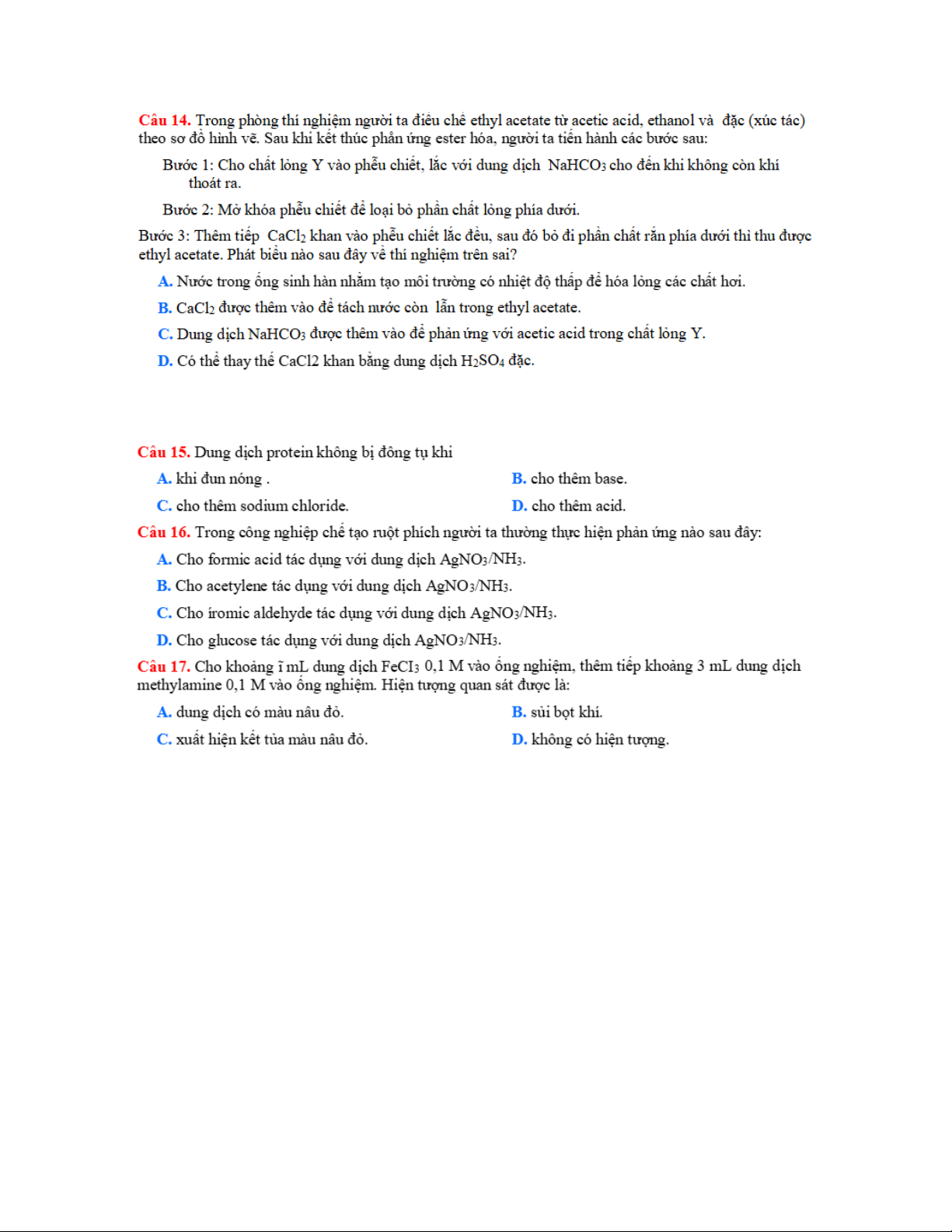 câu hỏi thí sinh chi chọn 1 phương án.