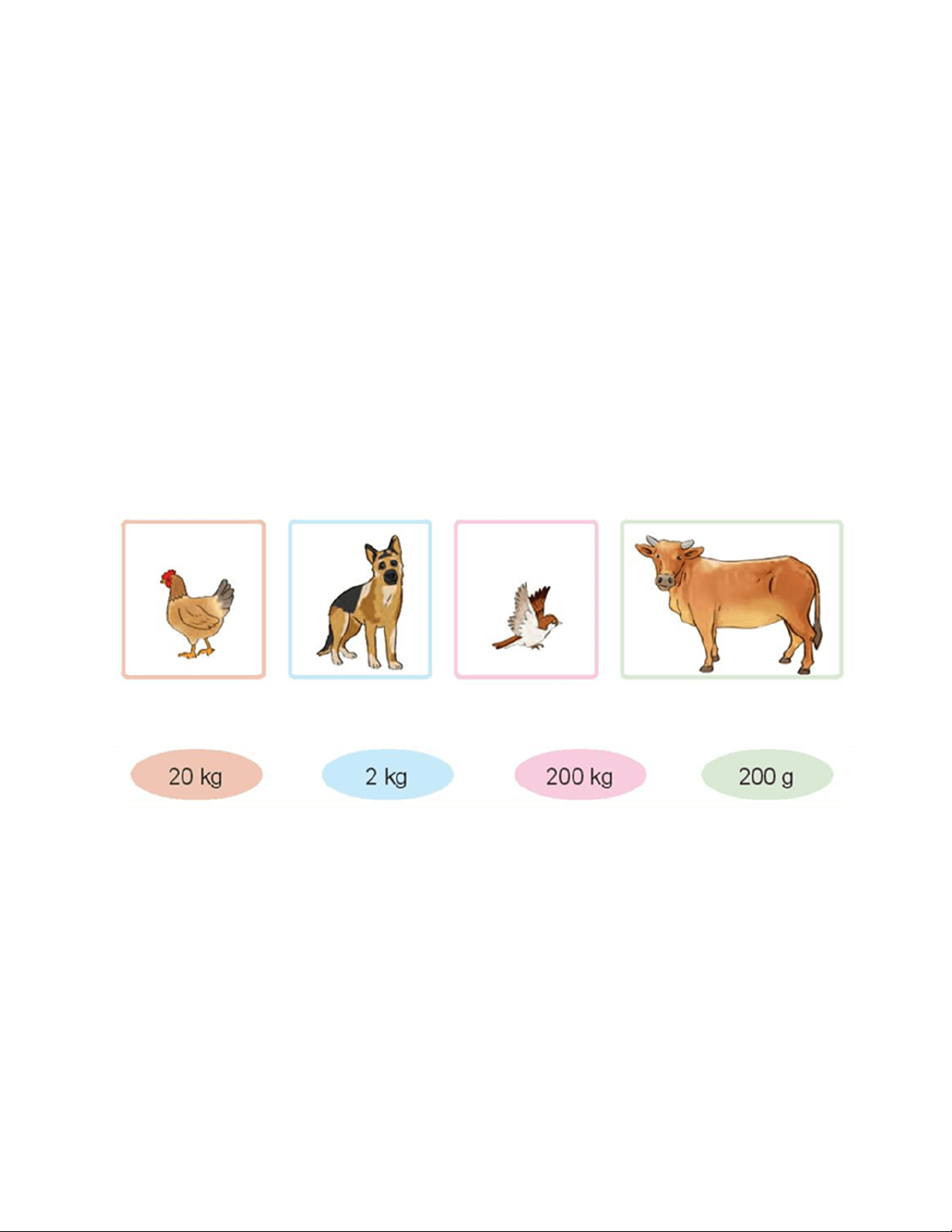 Chọn số cân phù hợp cho mỗi con vật Câu 8. Giải toán