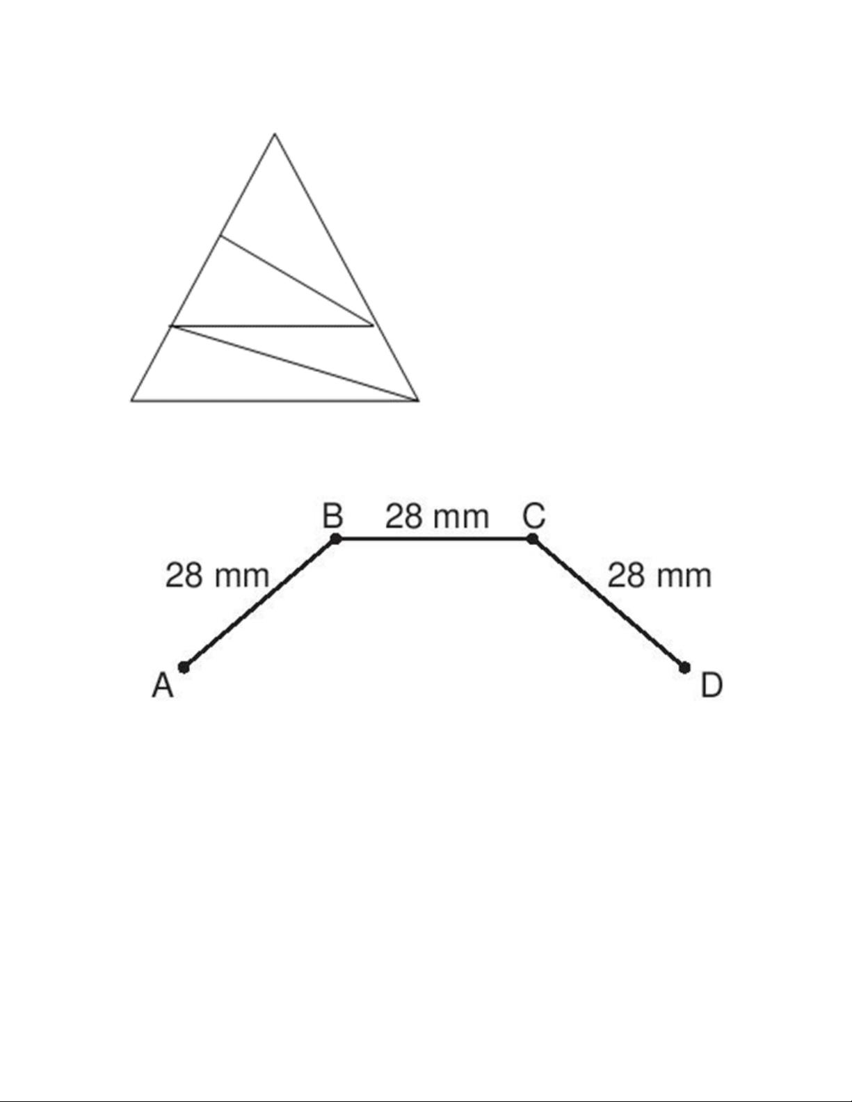 Độ dài đường gấp khúc ABCD là: 28 + 28 + 28 = 84 mm