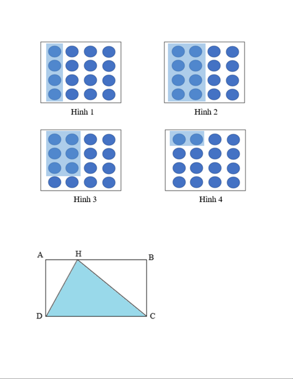 Câu 6. Trong các hình vẽ dưới đây, hình nào đã khoanh vào số chấm tròn? A. Hình 1 B. Hình 2 C. Hình 3 D. Hình 4