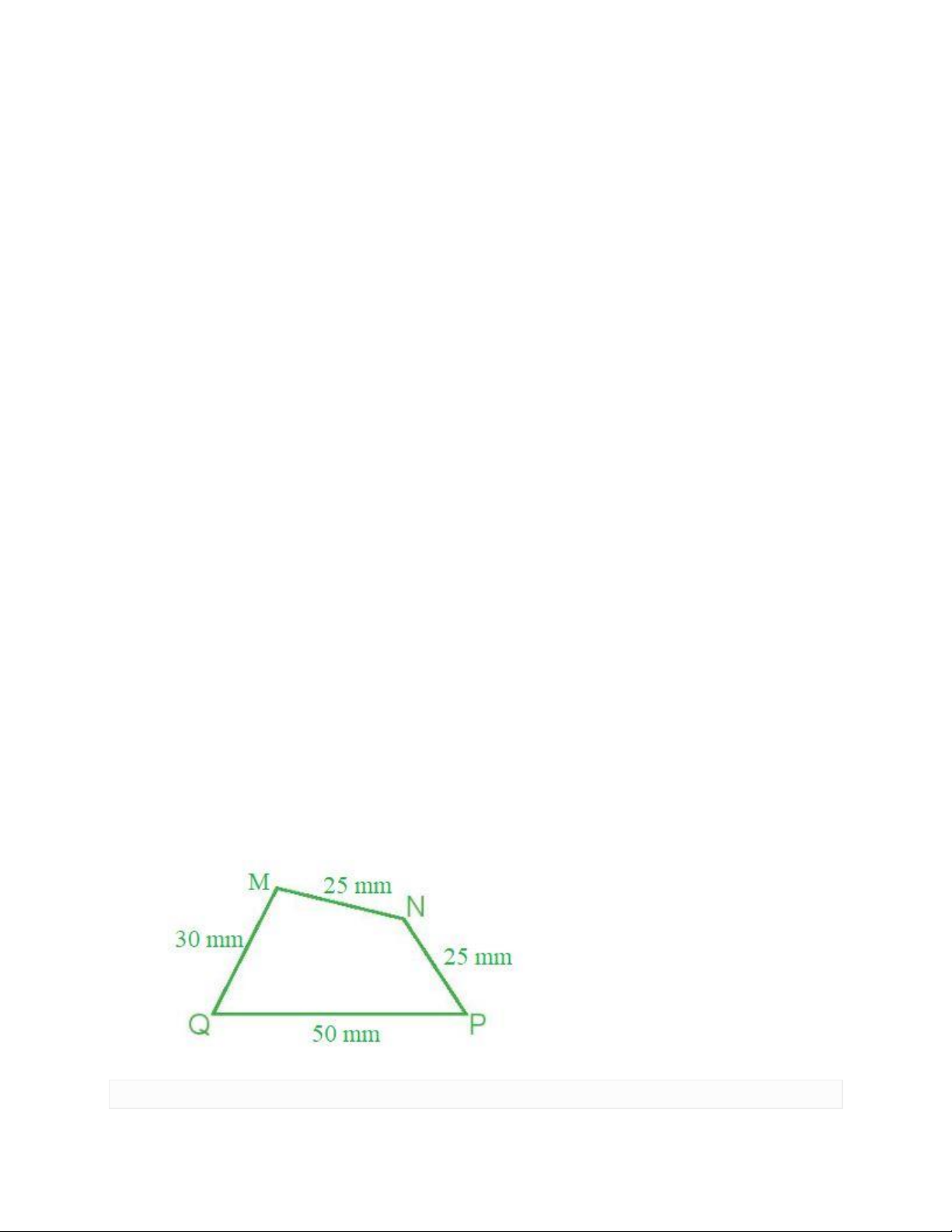 Câu 11. Chu vi hình tứ giác MNPQ là: 30 + 25 + 25 + 50 = 130 mm Câu 12. a) 1 hm < 102 m