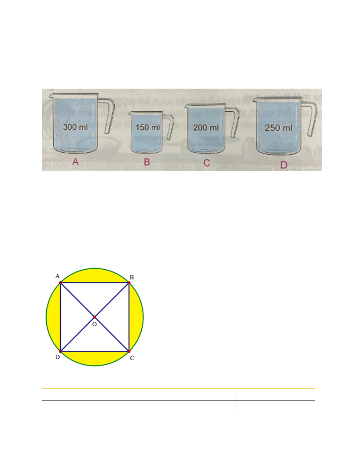 d) Sắp xếp các ca theo tứ tự đựng ít nước nhất đến nhiều nước nhất là: B, C, D, A Câu 13.