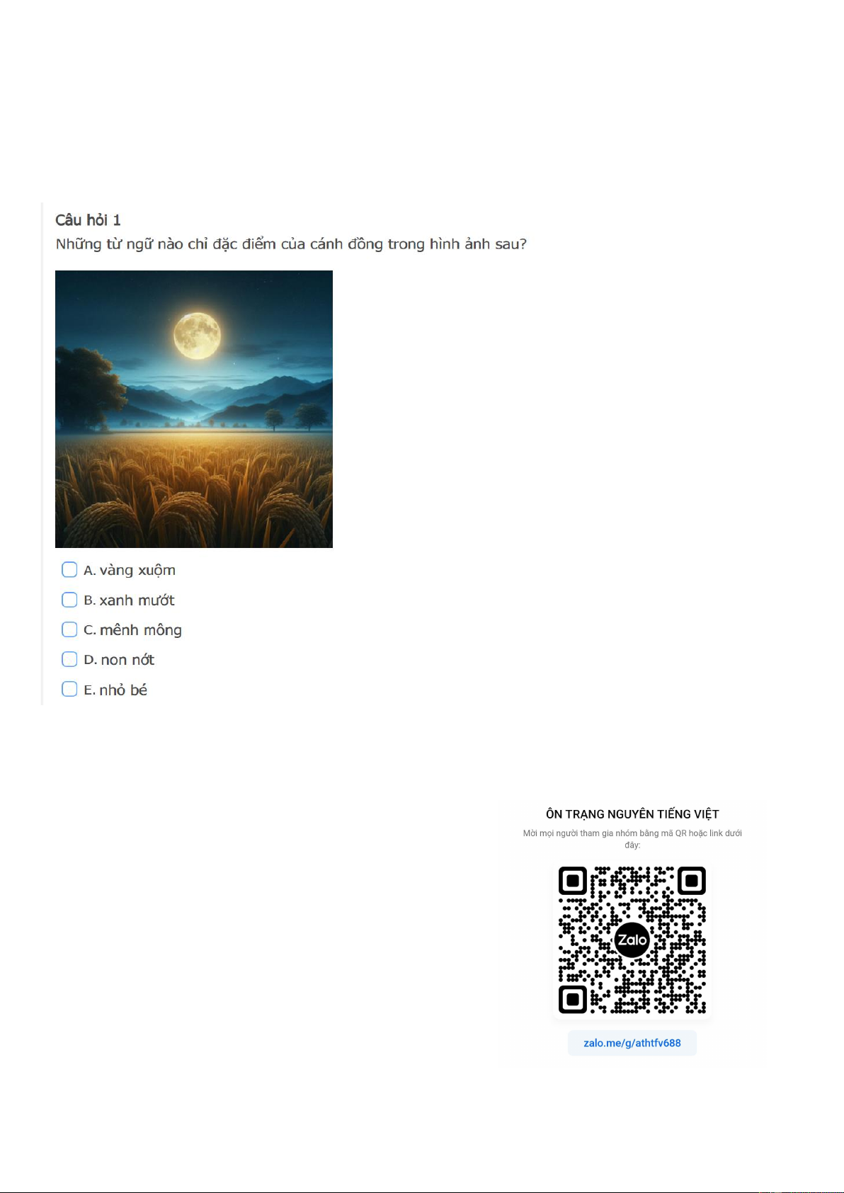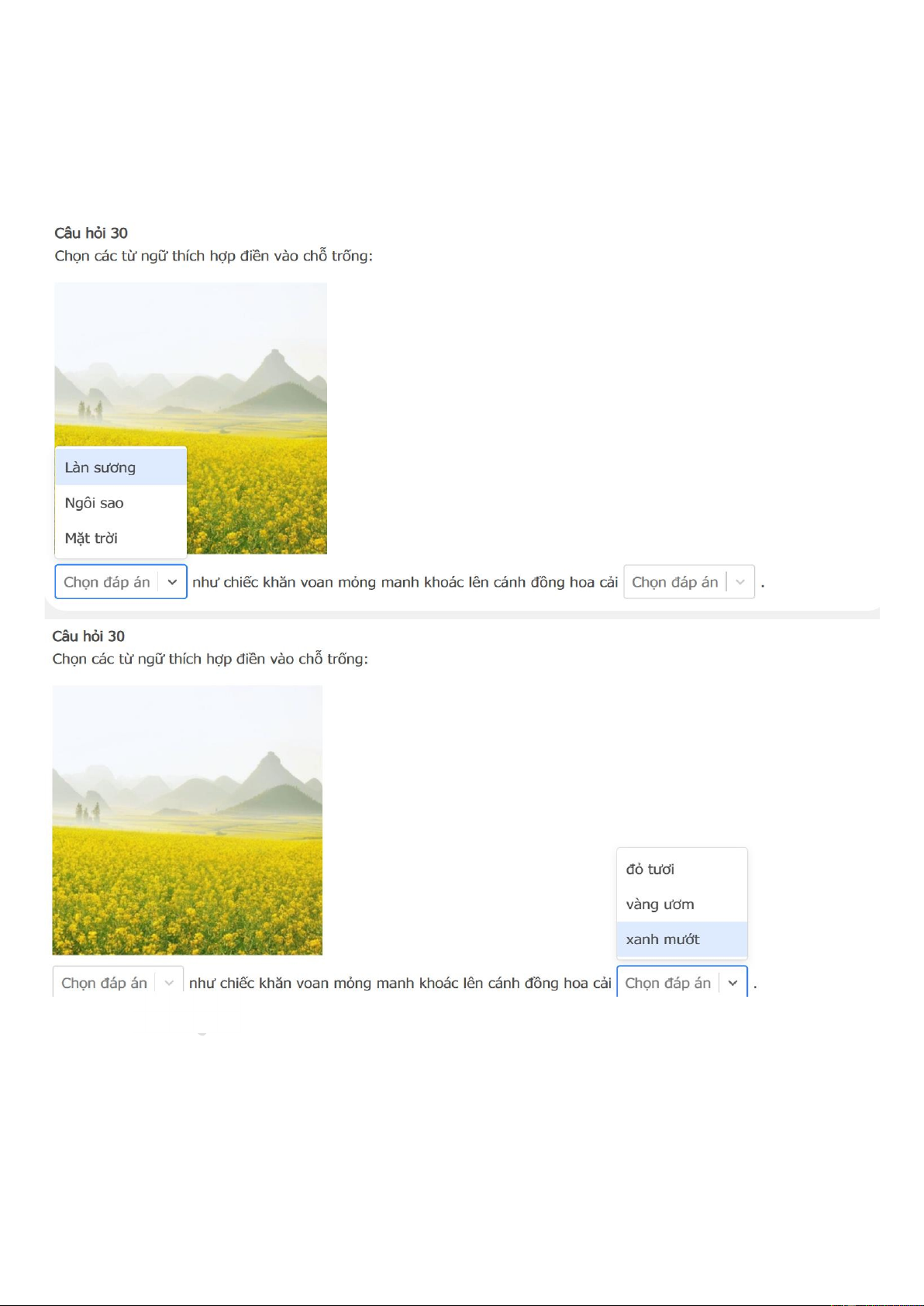 VÒNG THI HƯƠNG – CẤP HUYỆN- MÃ 01- NĂM HỌC 2024-2025