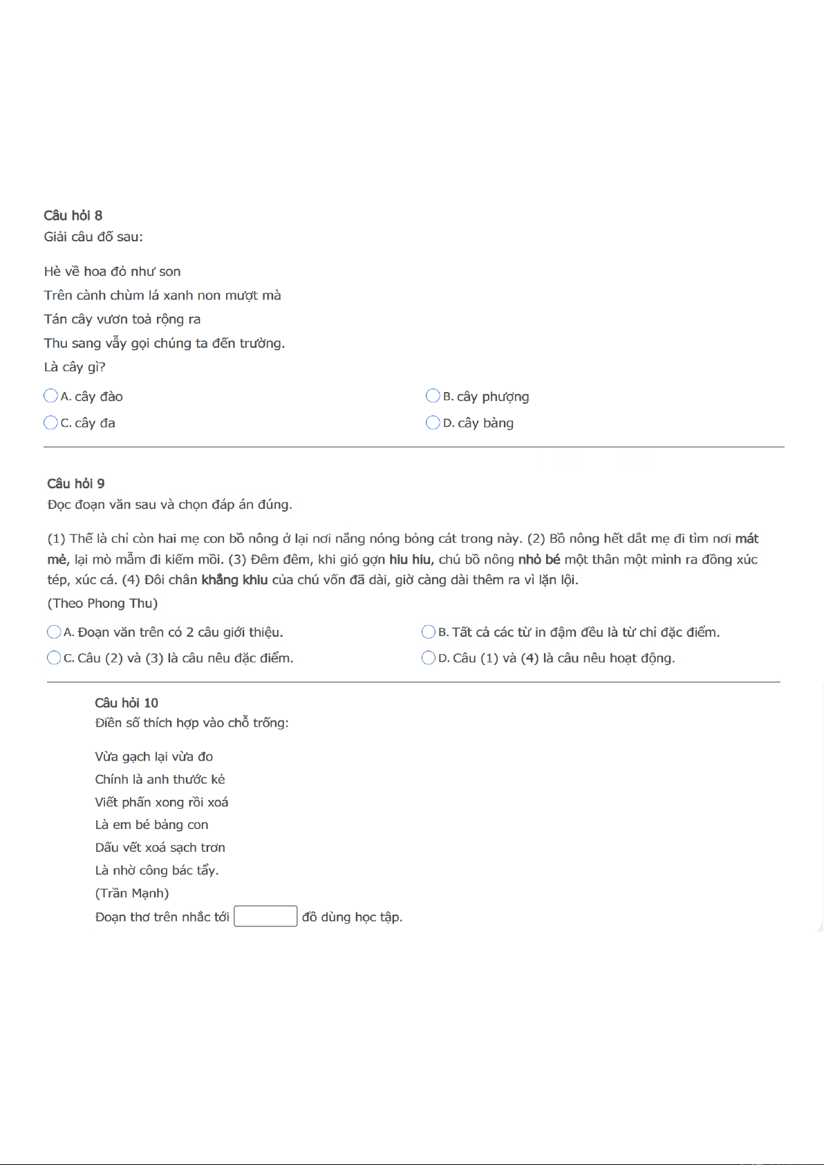 TRẠNG NGUYÊN TIẾNG VIỆT LỚP 2