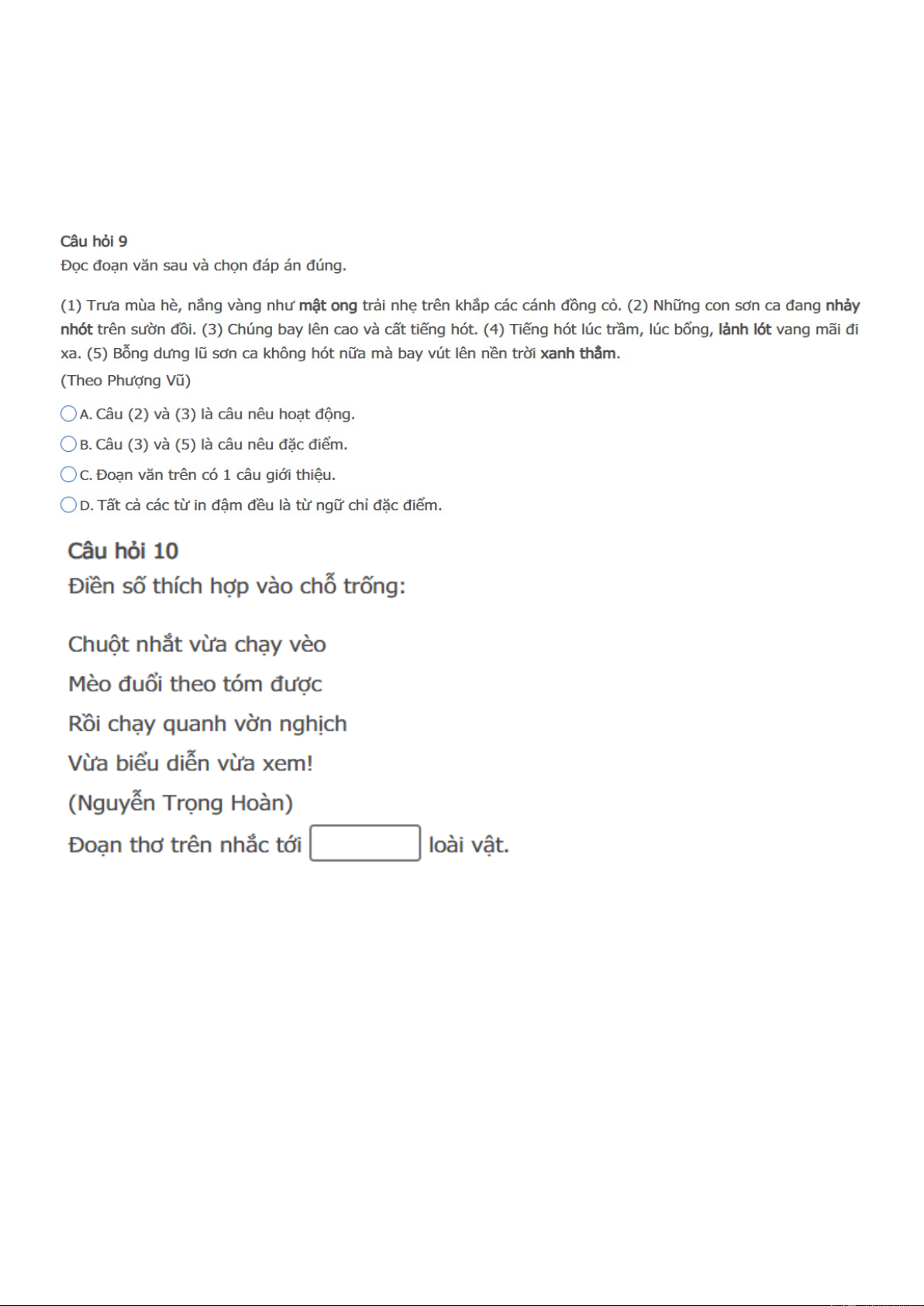 TRẠNG NGUYÊN TIẾNG VIỆT LỚP 2