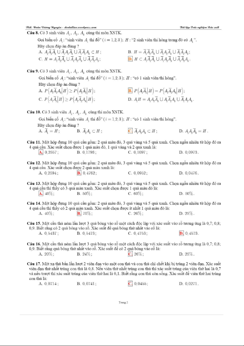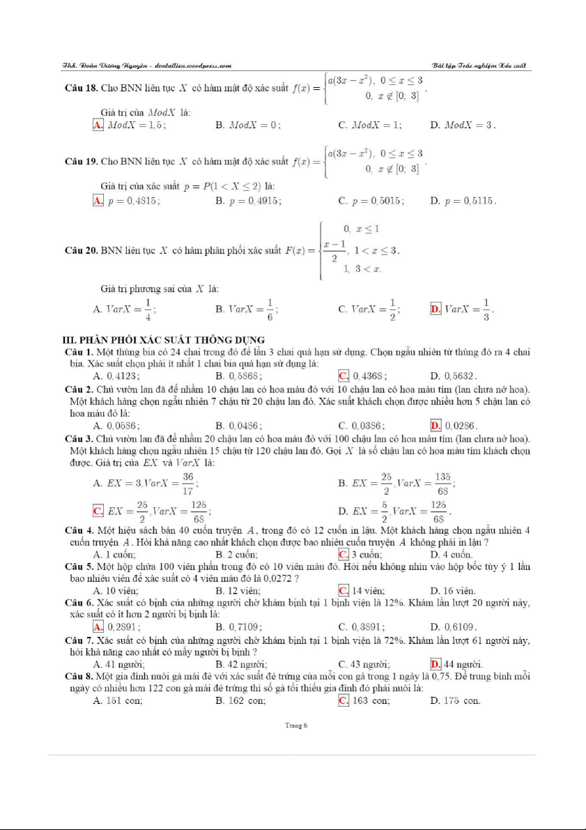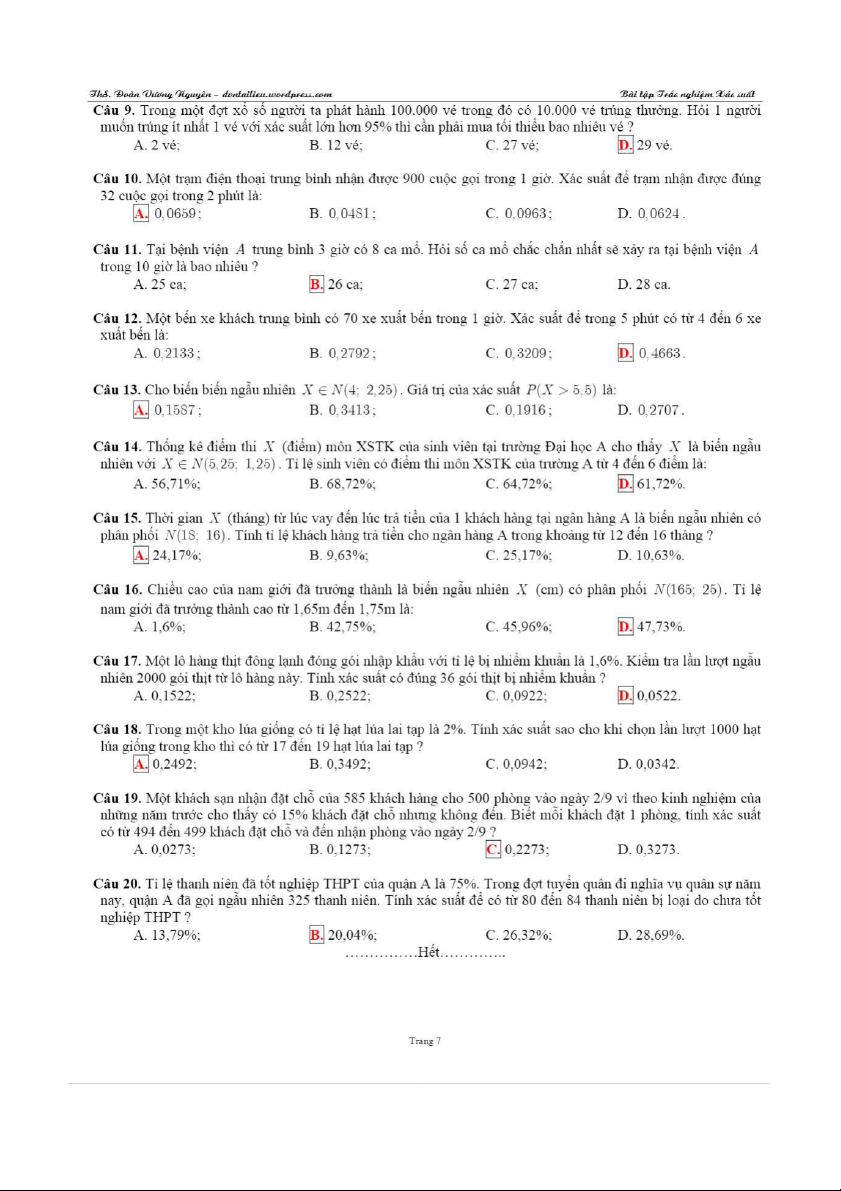 Bộ đề trắc nghiệm ôn tập kiến thức môn Xác suất Thống kê | Đại học Bách Khoa Hà Nội
