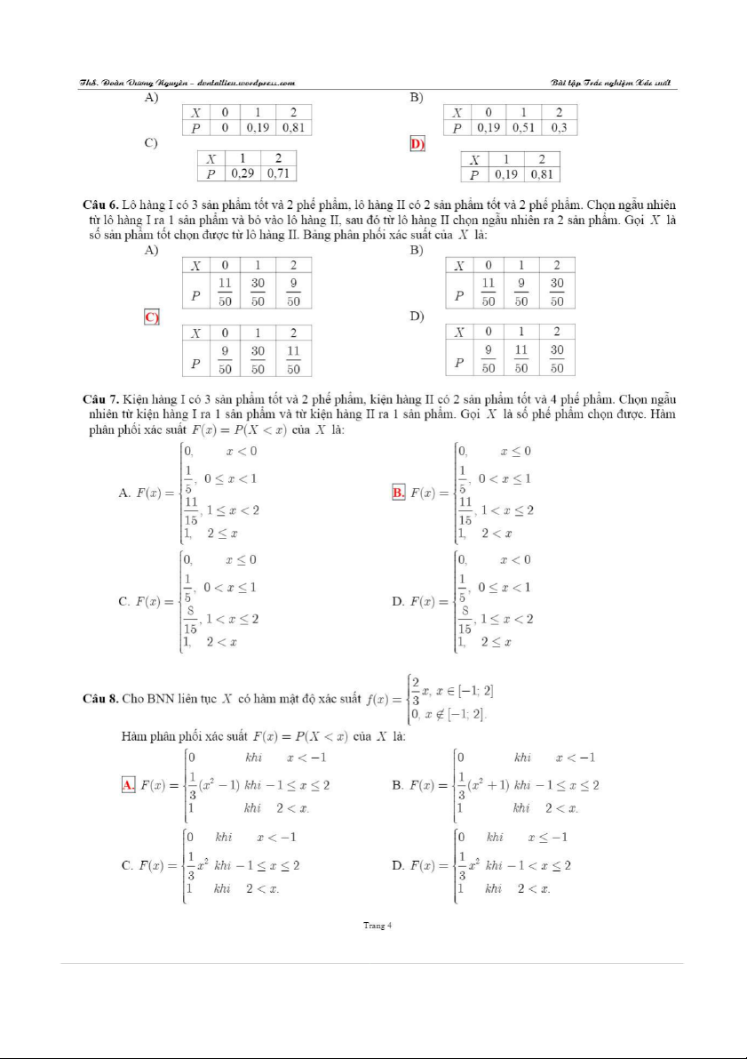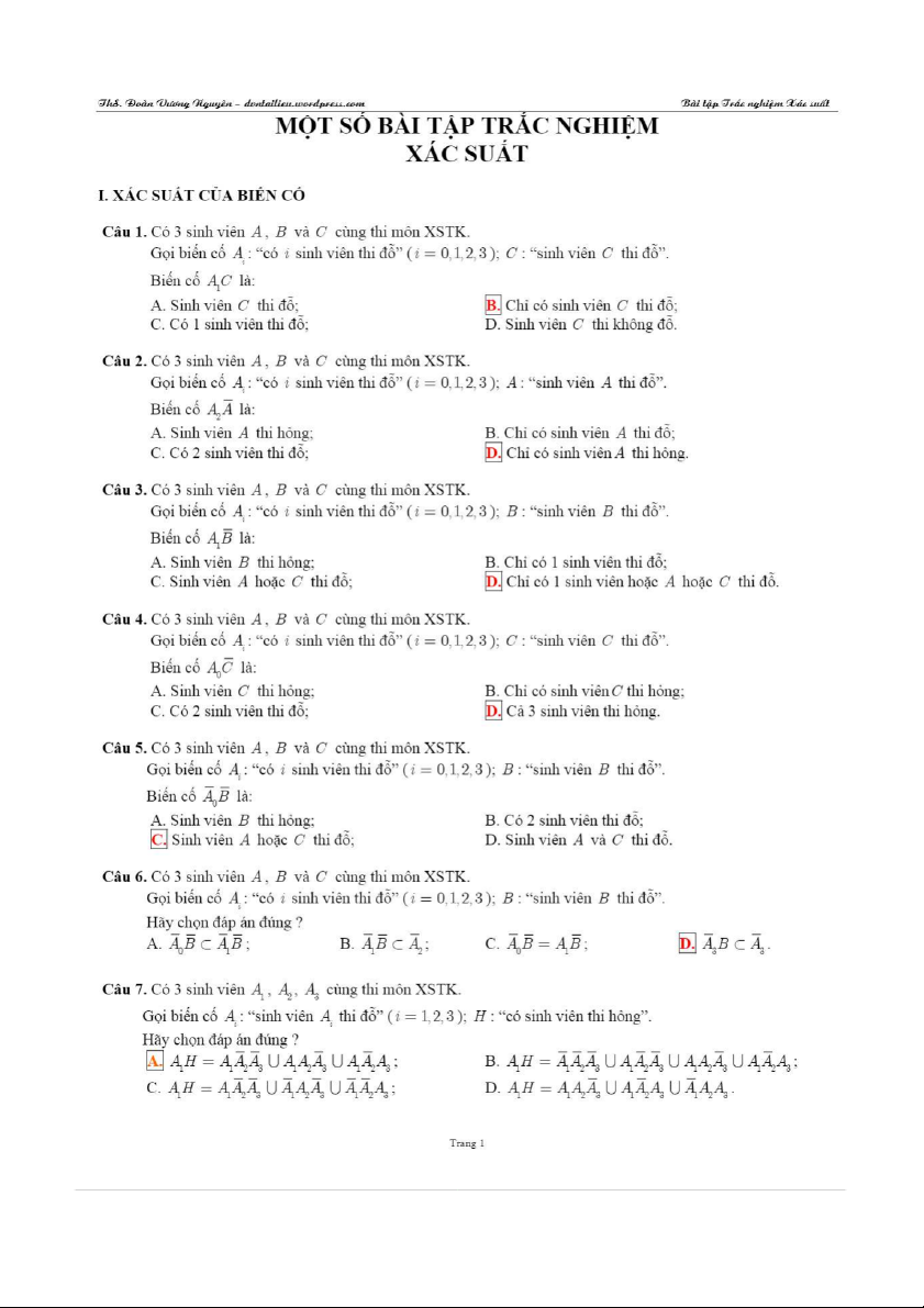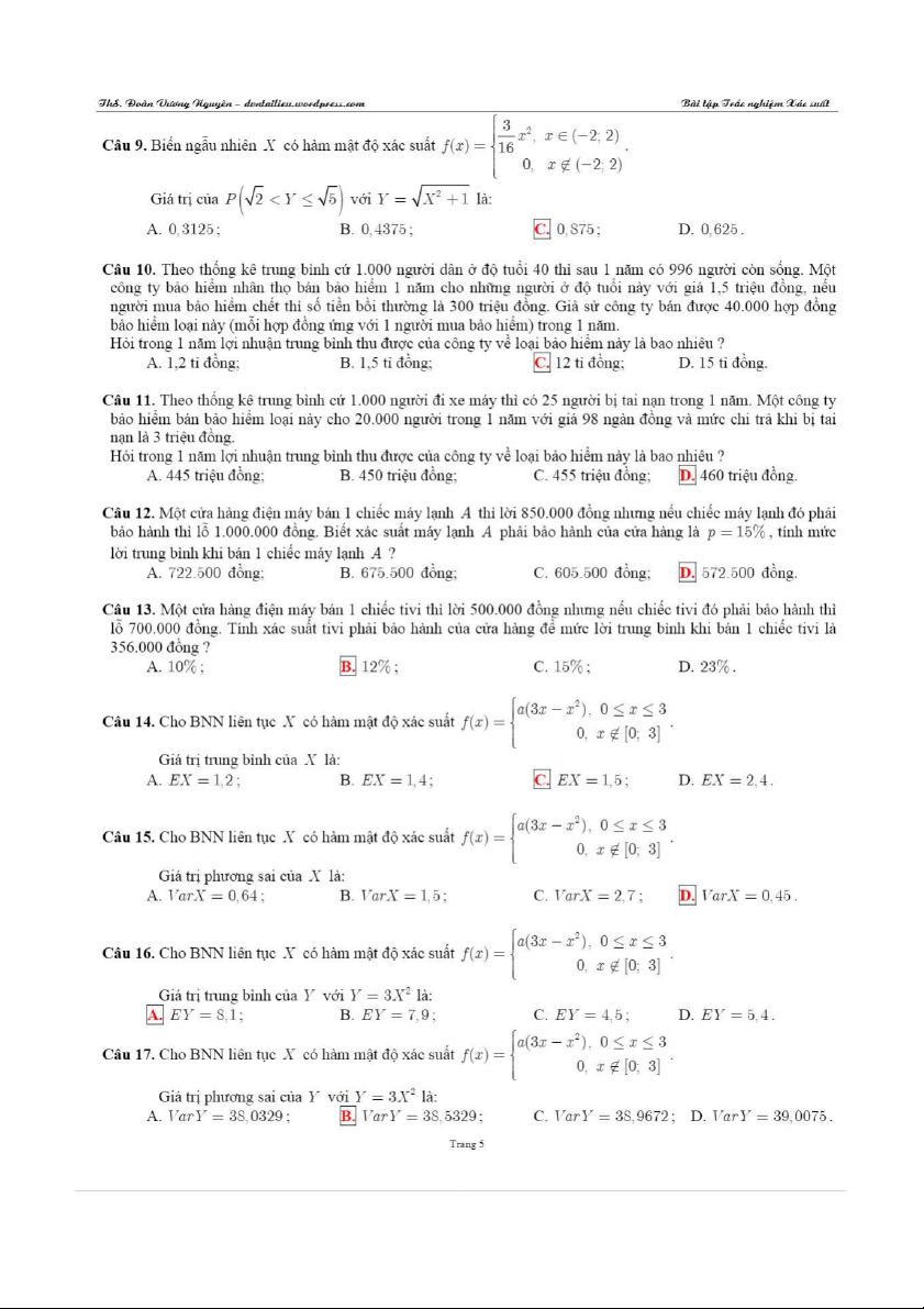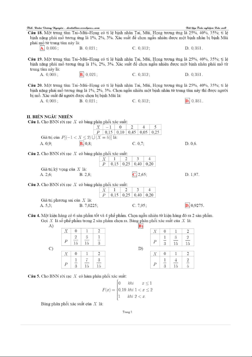 Bộ đề trắc nghiệm ôn tập kiến thức môn Xác suất Thống kê | Đại học Bách Khoa Hà Nội