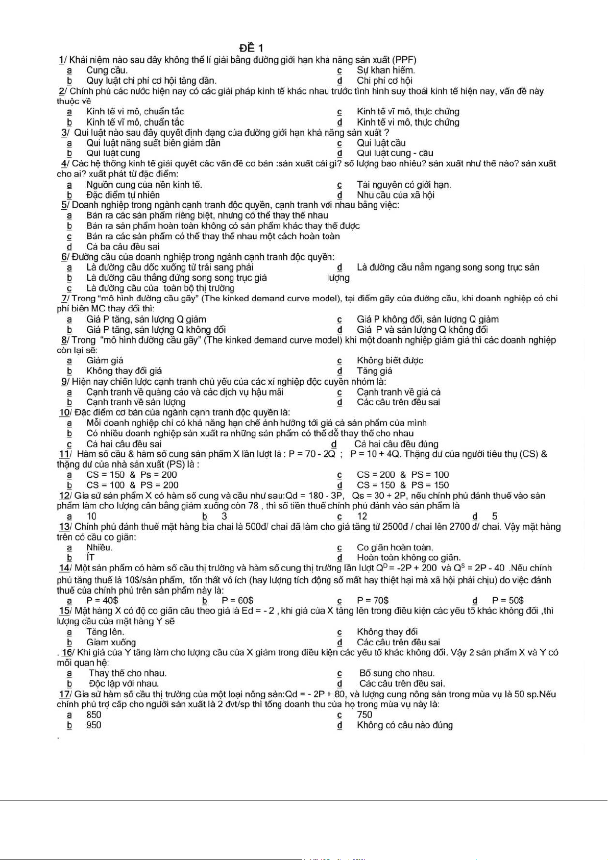 Bộ đề trắc nghiệm ôn tập môn Kinh tế vi mô | Trường Đại học KinhTế Quốc Dân. Tài liệu giúp bạn tham khảo, ôn tập và đạt kết quả cao. Mời đọc đón xem!