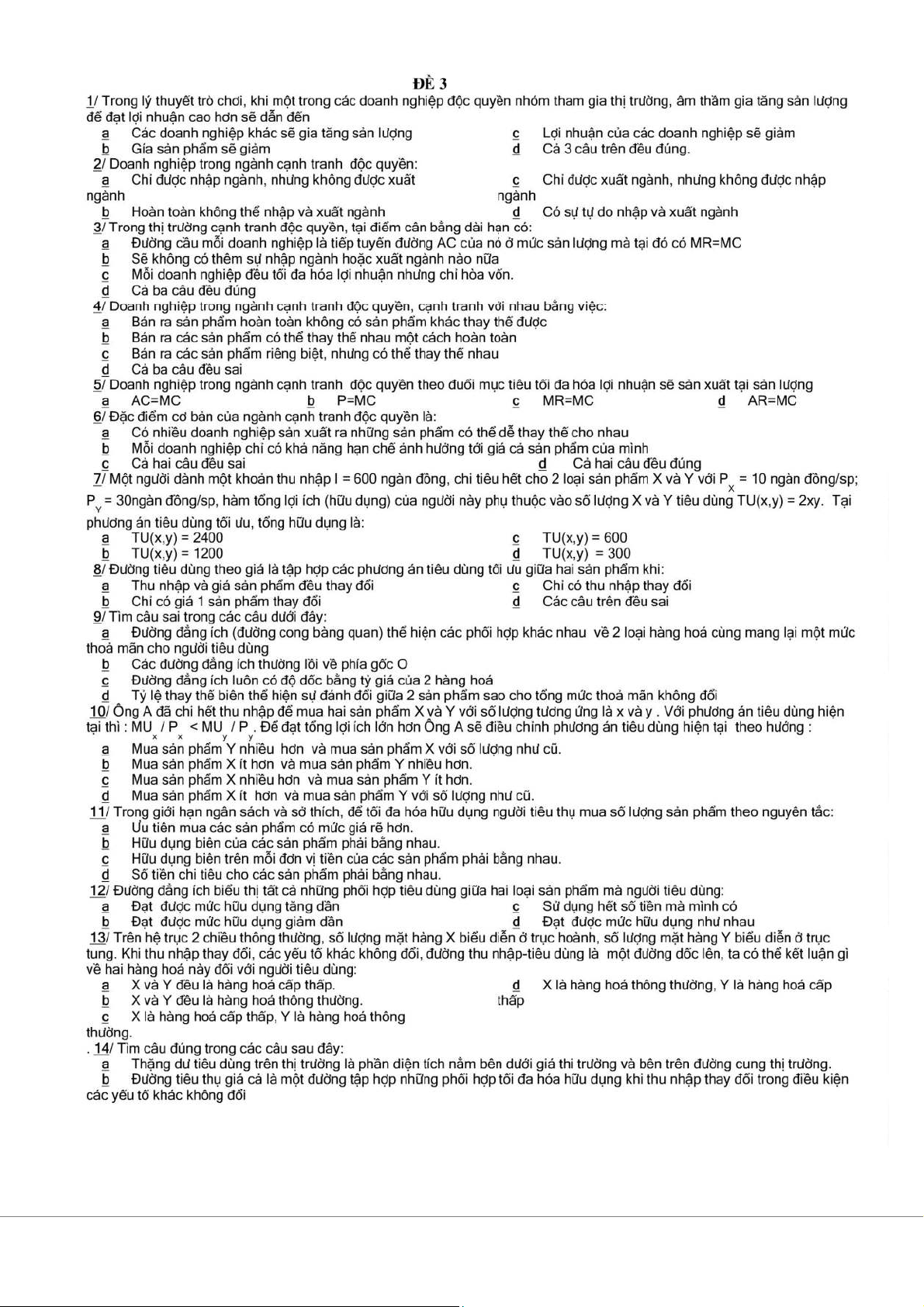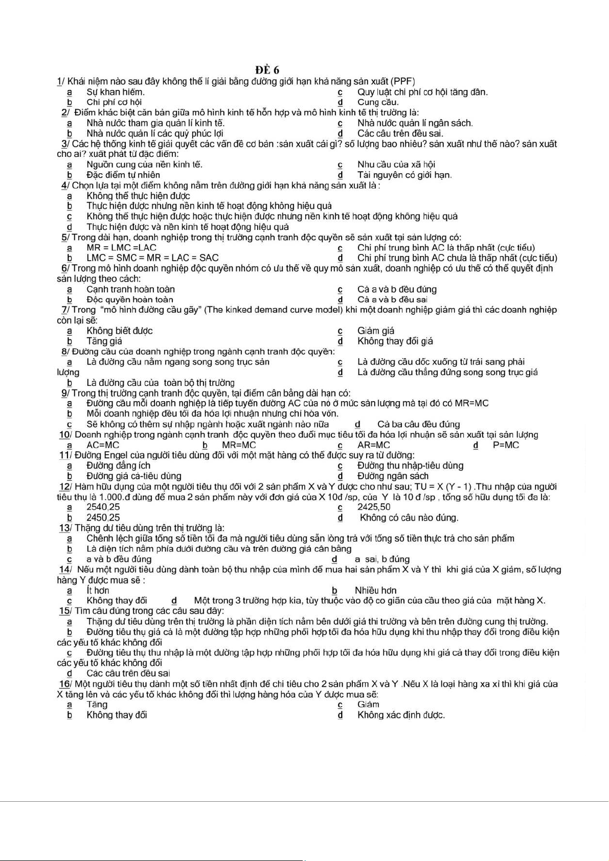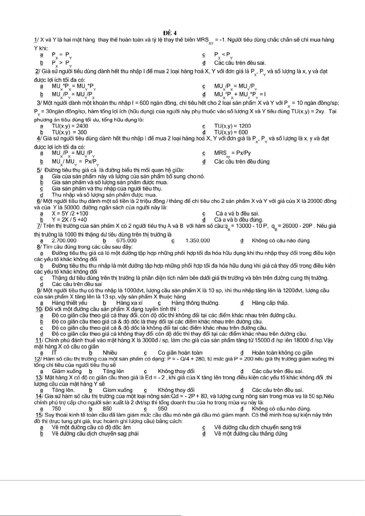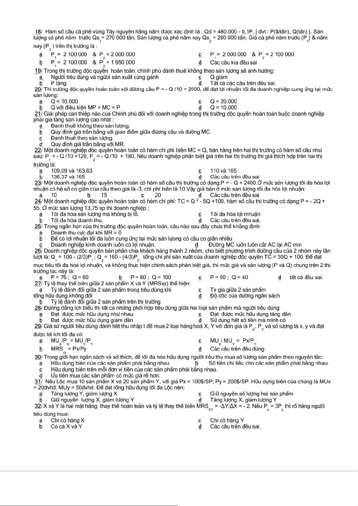 Bộ đề trắc nghiệm ôn tập môn Kinh tế vi mô | Trường Đại học Kinh Tế Quốc Dân