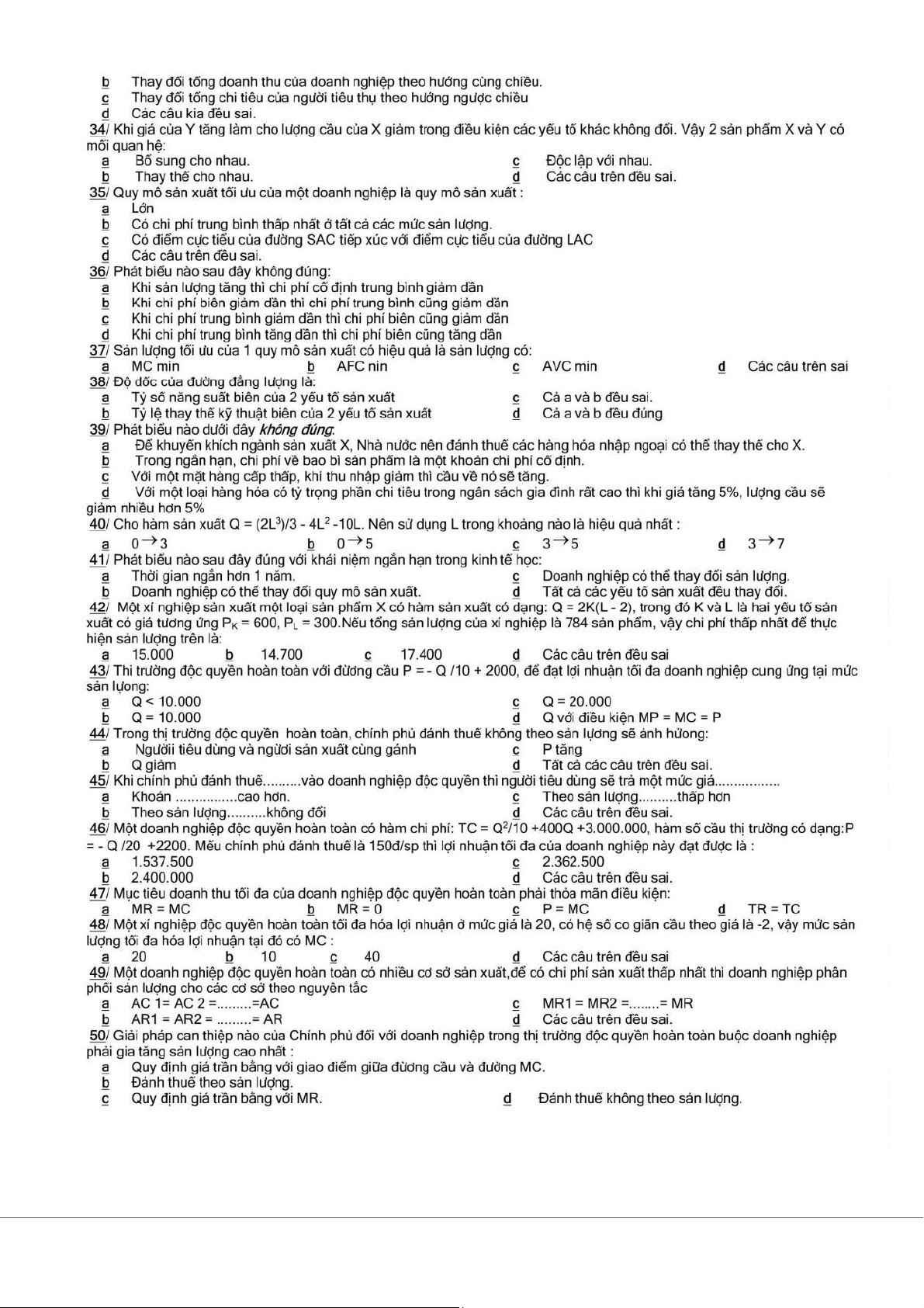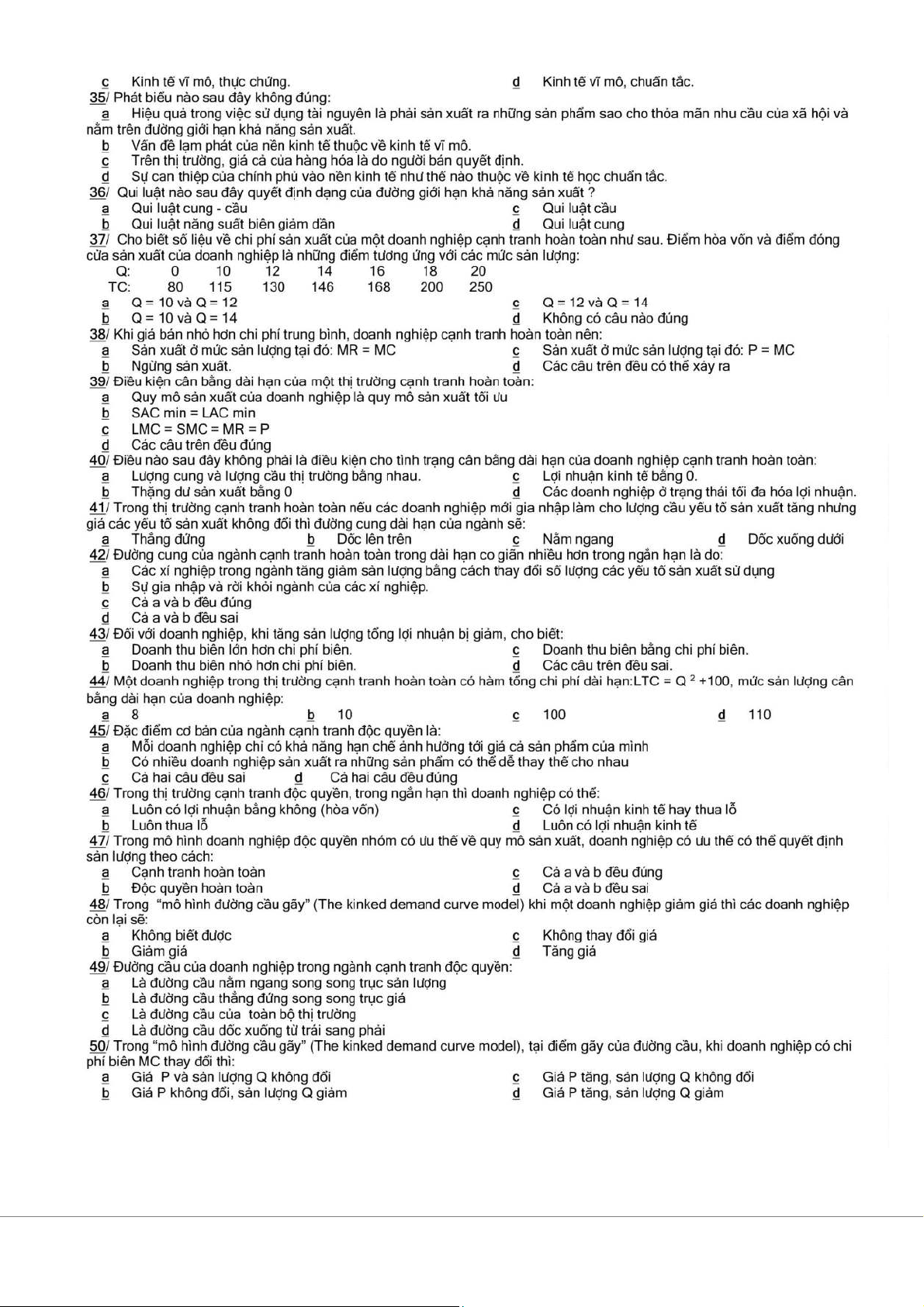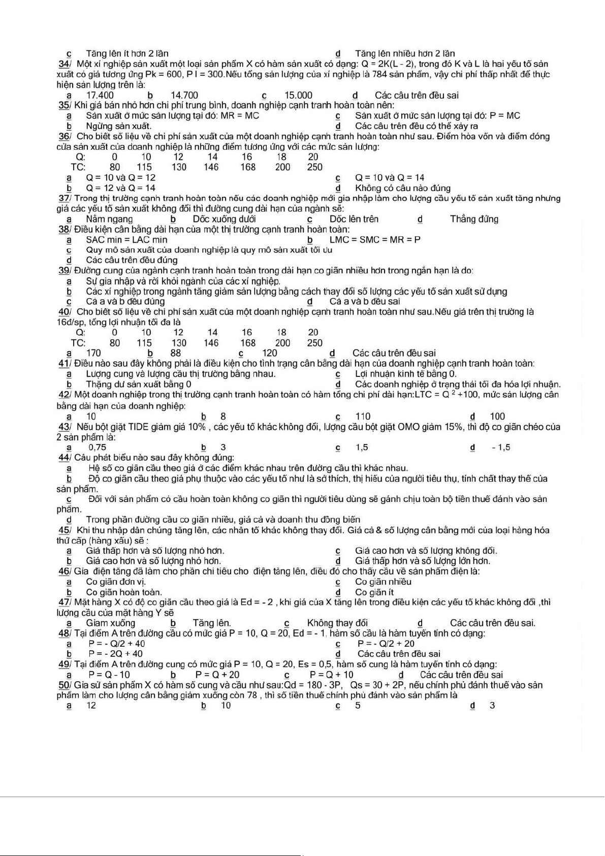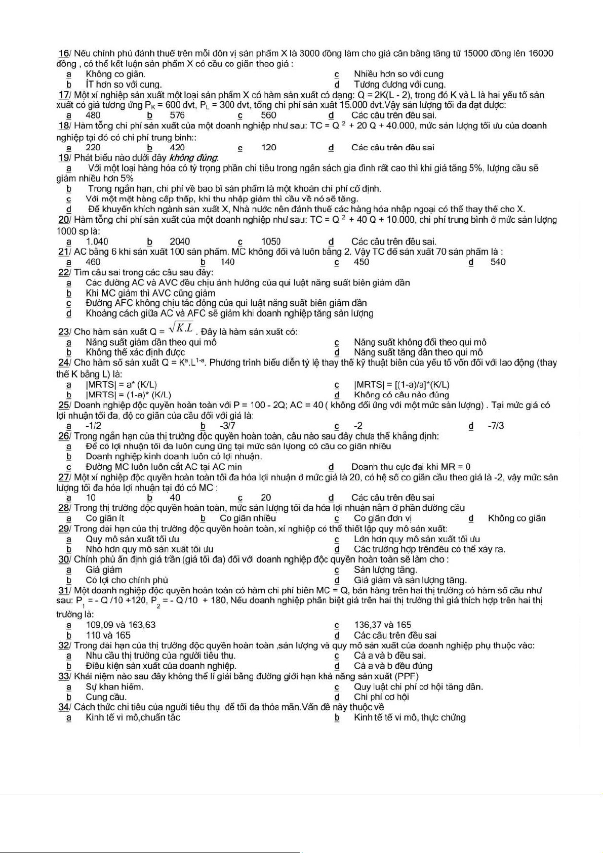 Bộ đề trắc nghiệm ôn tập môn Kinh tế vi mô | Trường Đại học Kinh Tế Quốc Dân
