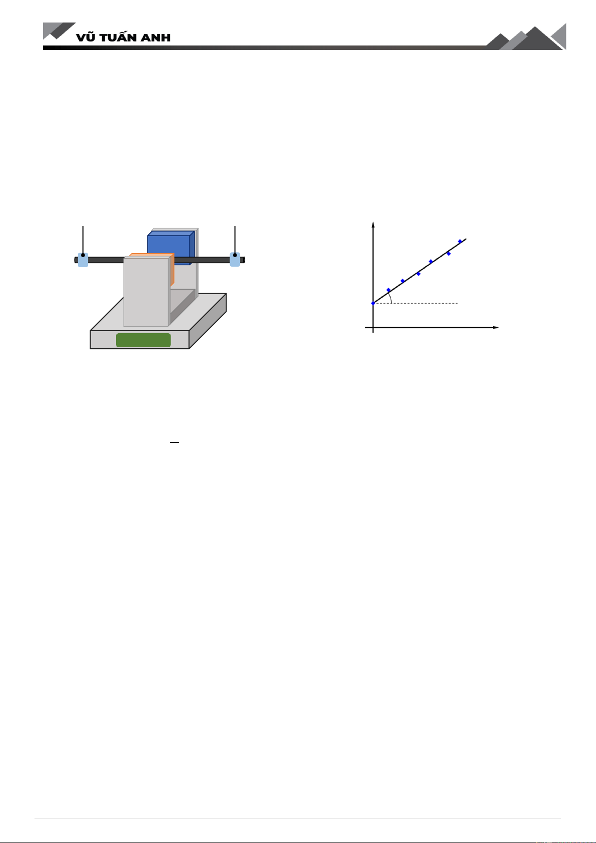 lại số chỉ 𝑚 của cân, bạn học sinh vẽ được đồ thị 𝑚 theo 𝐼 như Hình vẽ 2. Dùng thước đo góc, bạn xác định đượ 𝑚 c 𝛼 = 280; lấy 𝑔 = 9,8 . 𝑠2