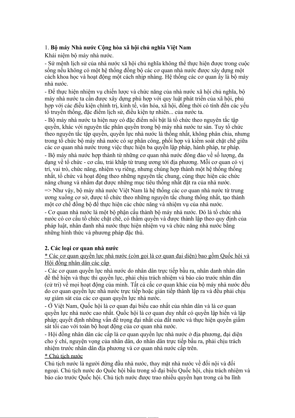 1. Bộ máy Nhà nước Cộng hòa xã hội chủ nghĩa Việt Nam