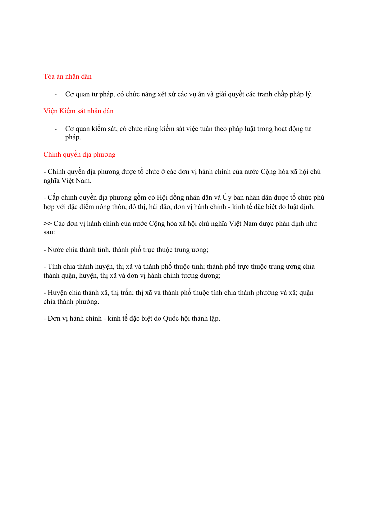 - Chính quyền địa phương được tổ chức ở các đơn vị hành chính của nước Cộng hòa xã hội chủ nghĩa Việt Nam.