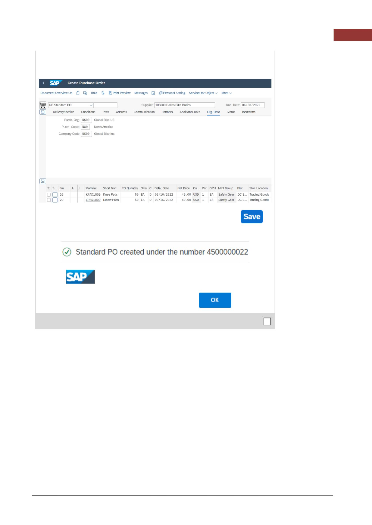Trong màn hình Tạo đơn đặt hàng , hãy thay đổi loại đơn đặt hàng thành NB Standard PO và nhập 103### NB Standard PO 103###