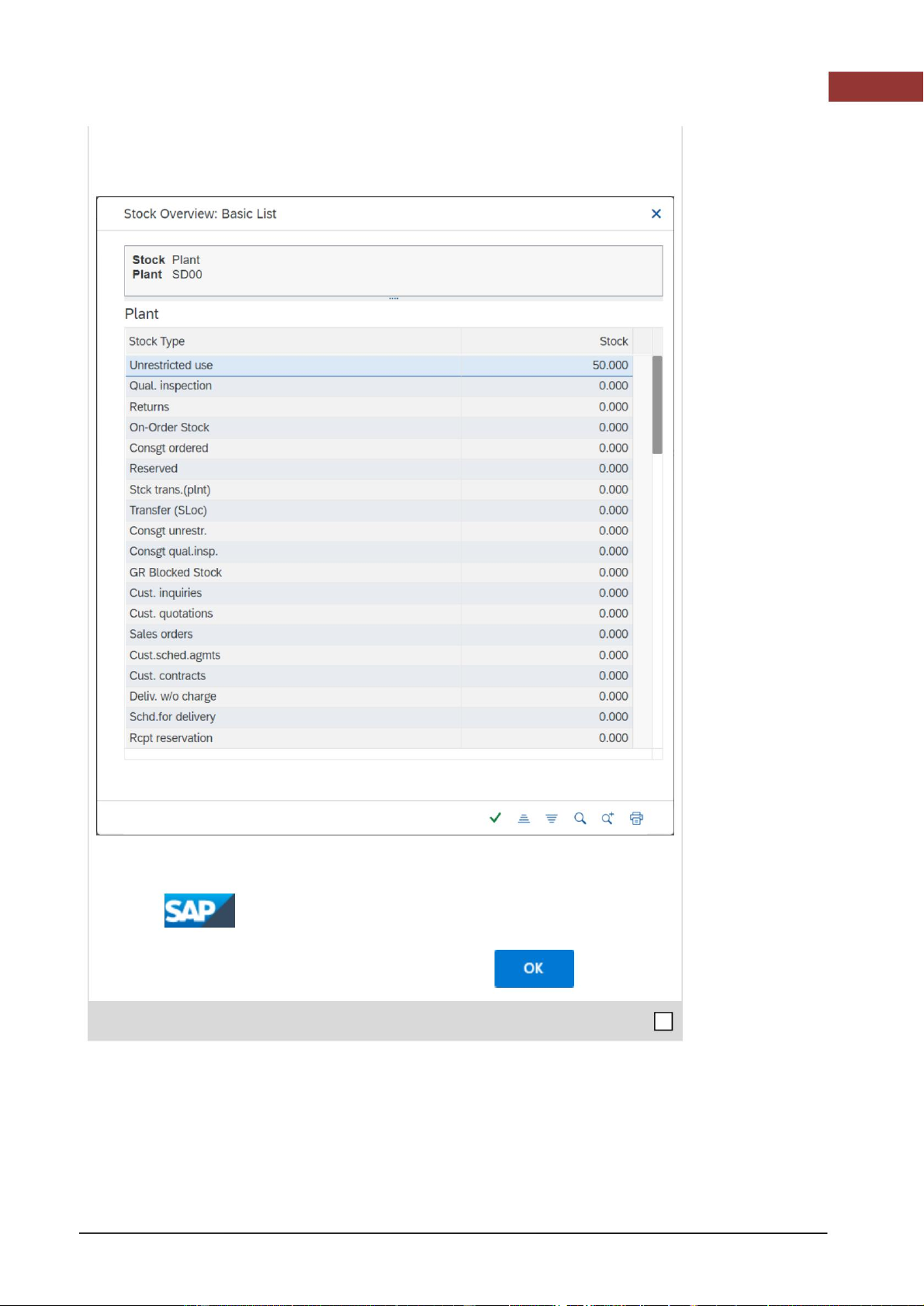 và Loại tồn kho là Sử dụng không hạn chế. Sử dụng không hạn chế Số tài liệu vật liệu Sau đó, nhấp vào