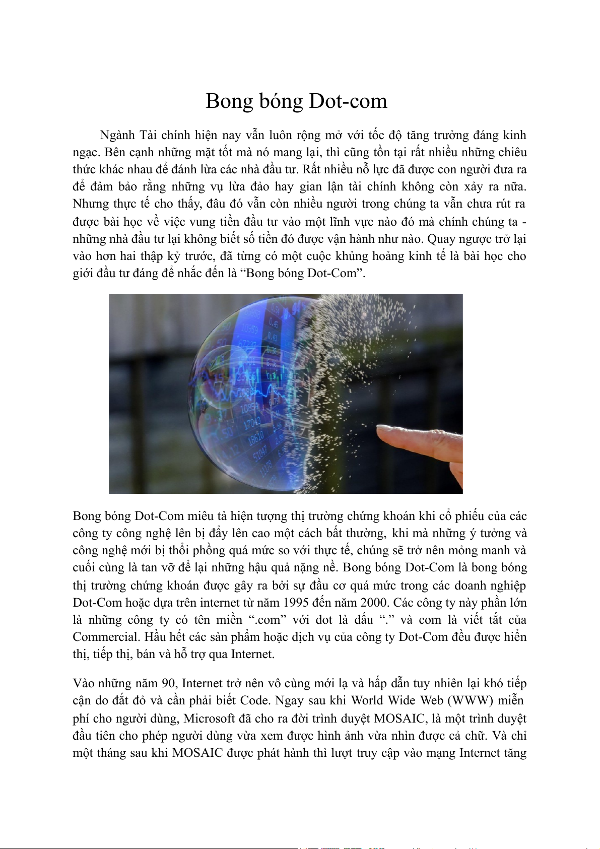 cuối cùng là tan vỡ để lại những hậu quả nặng nề. Bong bóng Dot-Com là bong bóng