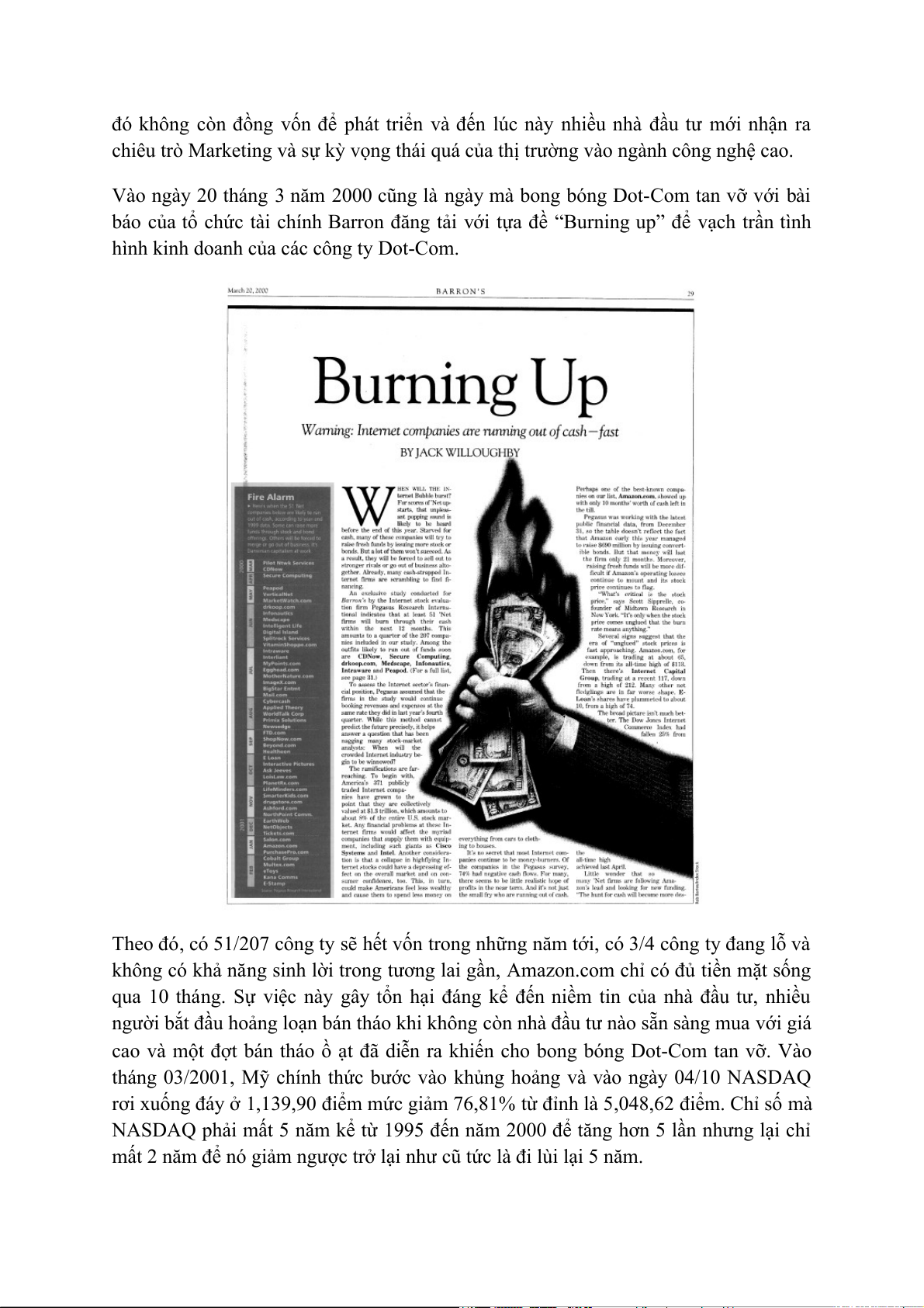 chẳng phải là điều dễ dàng. Ngày 10/3/2000 NASDAQ đã đạt 5,048,62 điểm và đây là