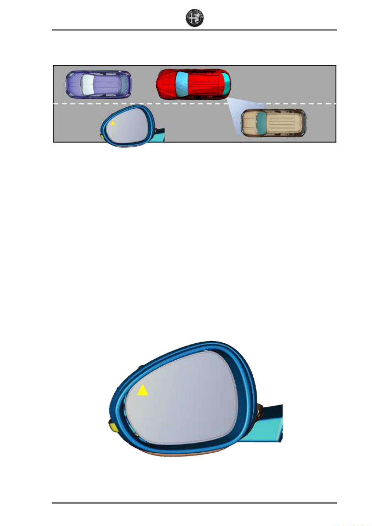 of vehicles/objects present in these areas by means of specific warning icons installed on each wing mirror.