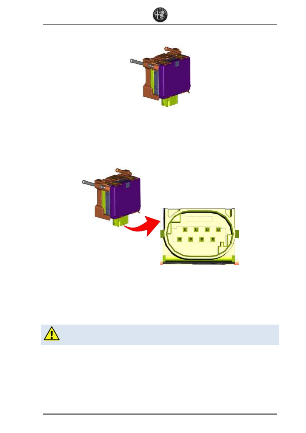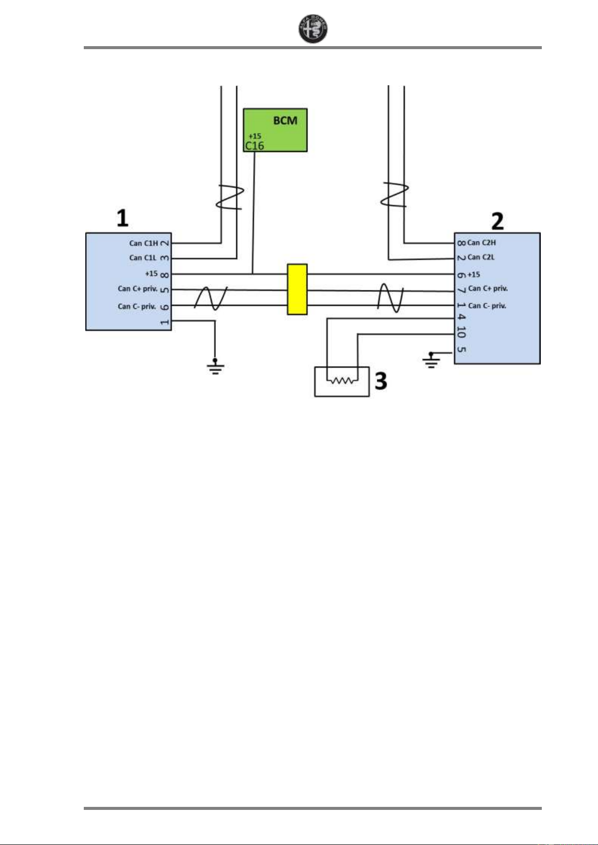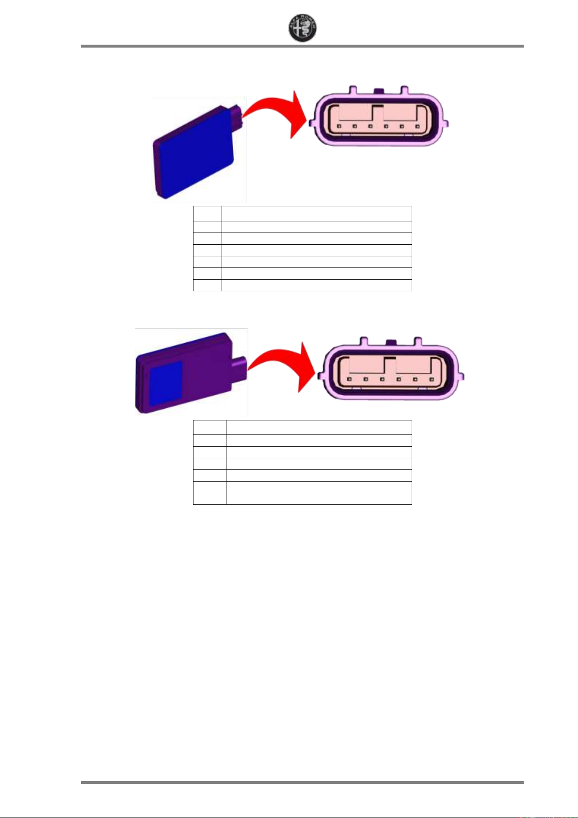 All rights reserved. The circulation and reproduction of all or part of this document by any means is prohibited. ALFA ROMEO STELVIO -11- REV 0.0 HALF module pin-out HALF module pin-out Pin Description 1 CAN-C (-) Private 2 CAN-C2 L 3 n.c. 4 Heater power supply 5 Earth 6 Power supply 7 CAN-C (+) Private 8 CAN-C2 H 9 n.c. 10 Heater earth 11 n.c. 12 n.c.