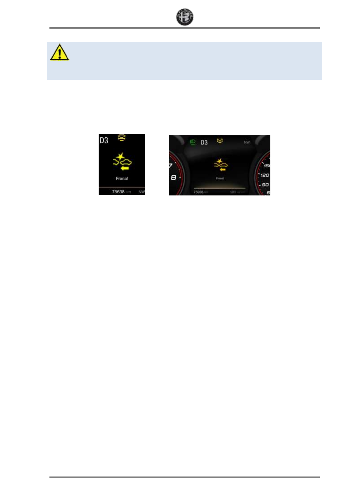 Example of visual warning of the FCW+ function on 3.5’’ and 7’’ displays of the instrument panel WARNING