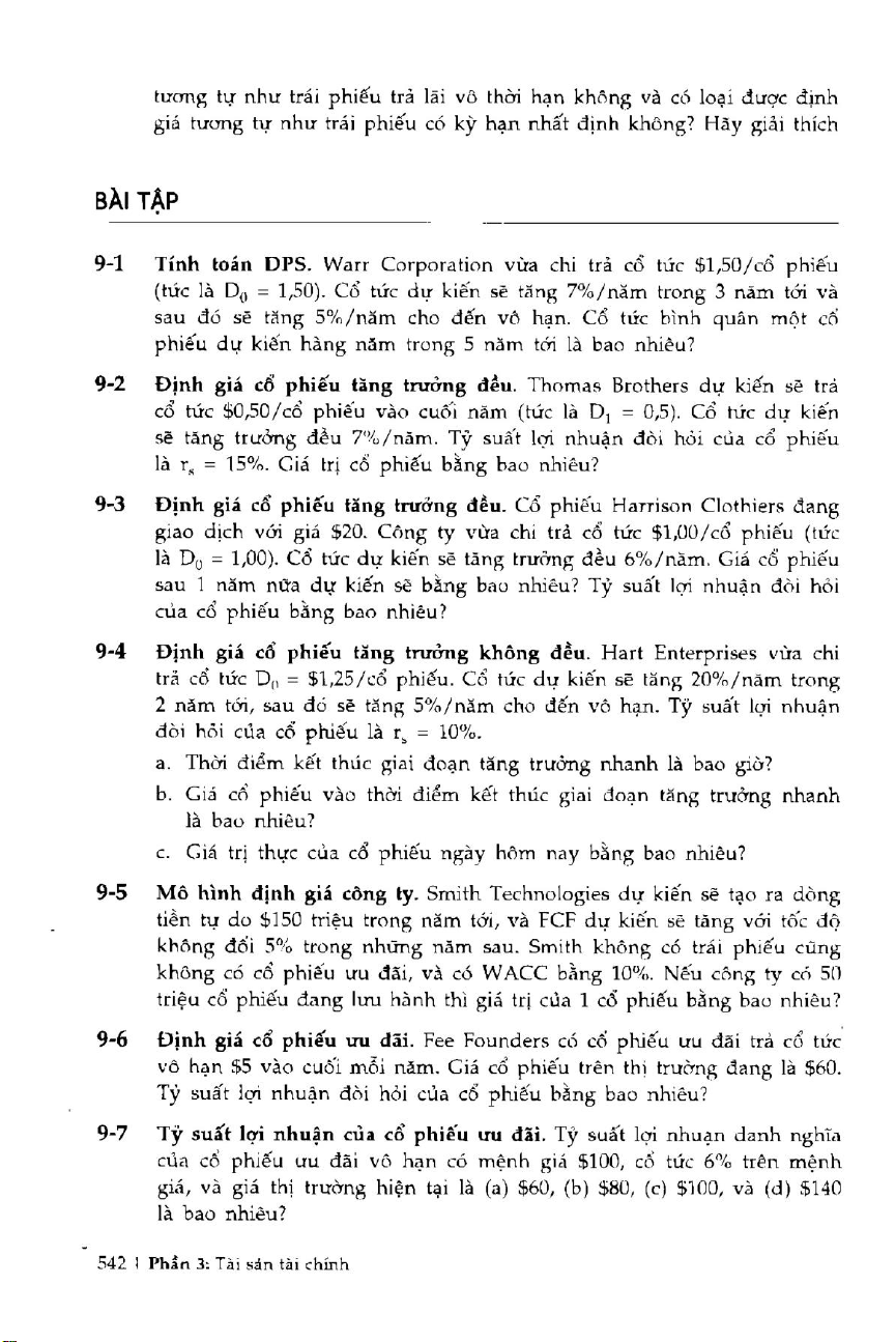BT 9.1-7 Trang 542 - Bài Tập Định Giá Cổ Phiếu và Trái Phiếu | Đại học Văn Lang