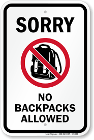 B. You cannot bring your backpacks into this area.