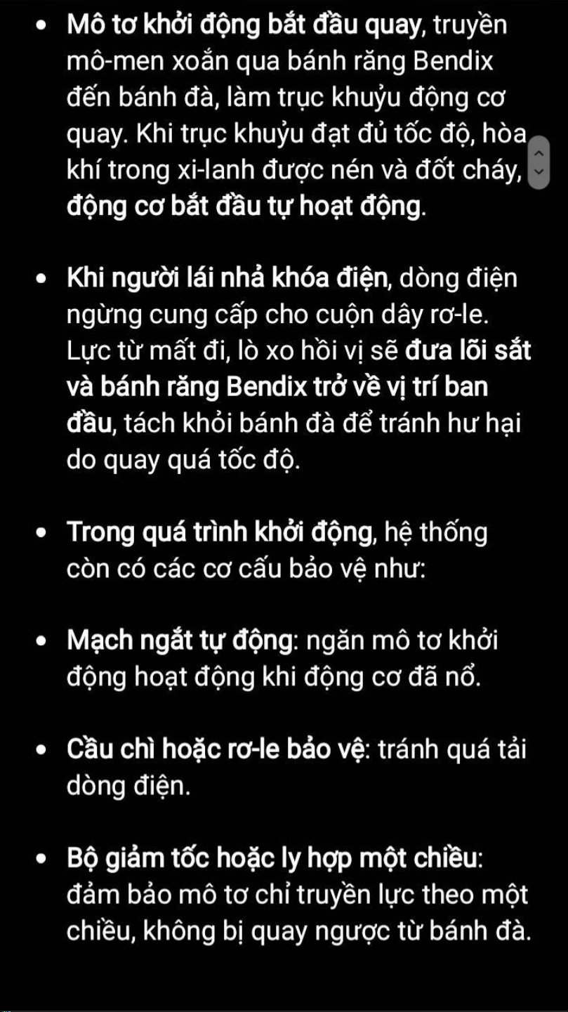 và bánh r ng Bendix tr v v trí ban u, tách kh i bánh à tránh h h i do quay quá t c . Trong quá trình kh i ng, h th ng còn có các c c u b o v nh :