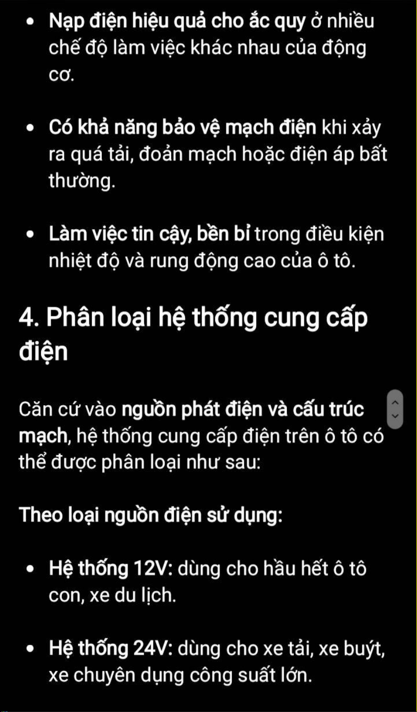 n ng l ng i n cho toàn b các h th ng i n trên ô tô.