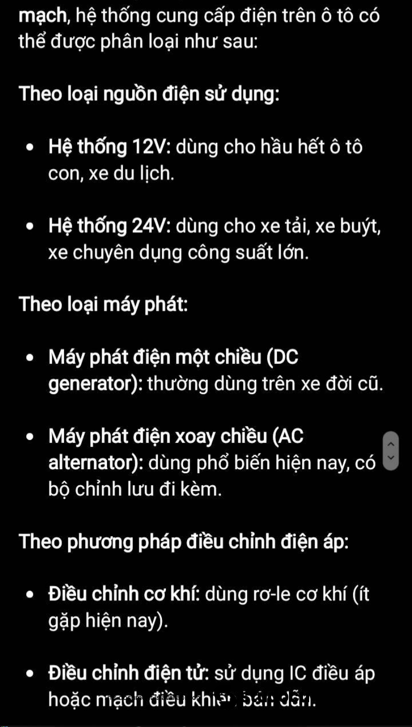 Máy phát i n xoay chi u ( AC alternator): dùng ph bi n hi n nay, có b ch nh l u i kèm.