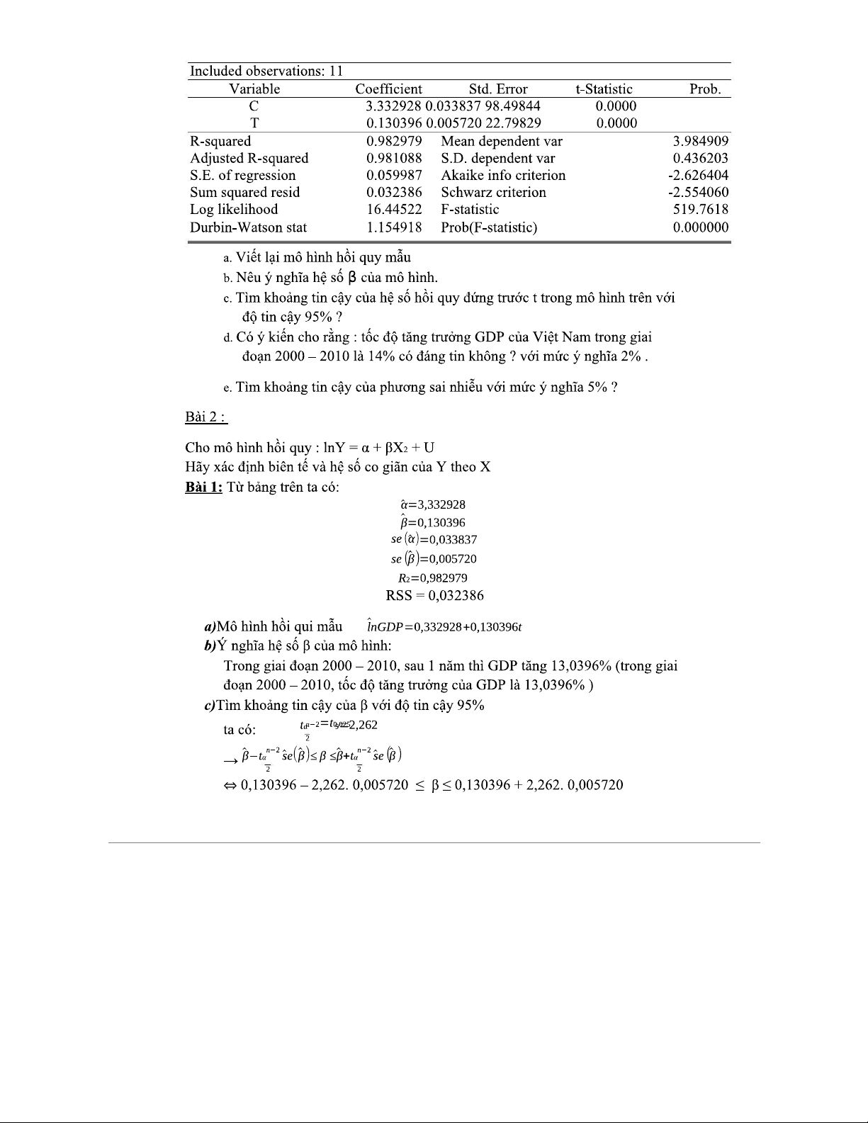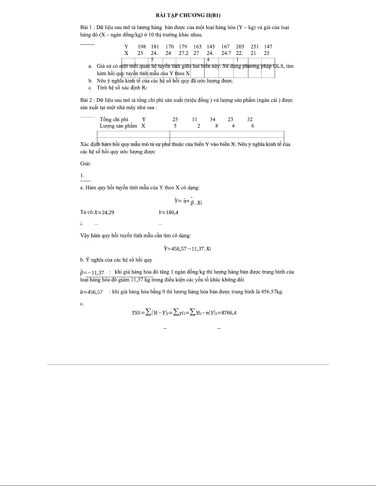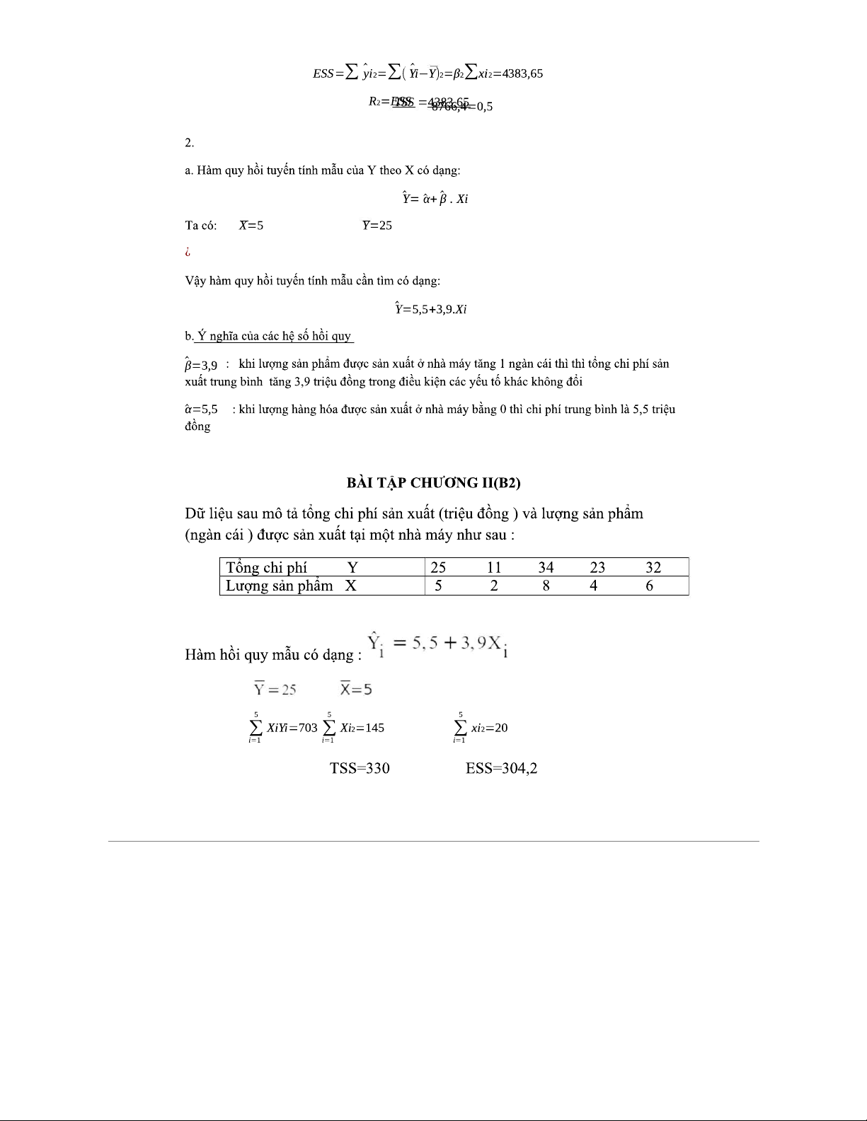 BT-KTL - Bài Tập Kinh Tế Lượng Chương II: Mô Hình Hồi Quy và Phân Tích
