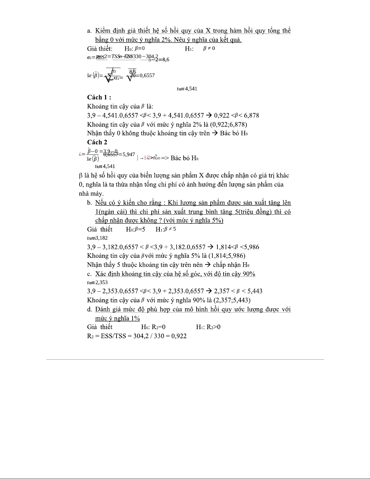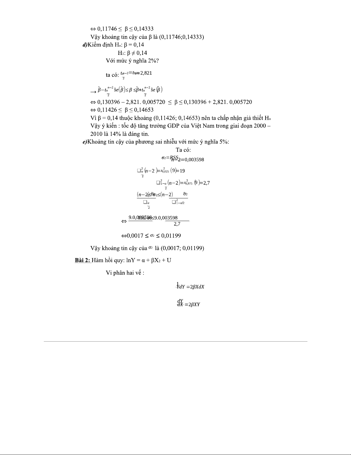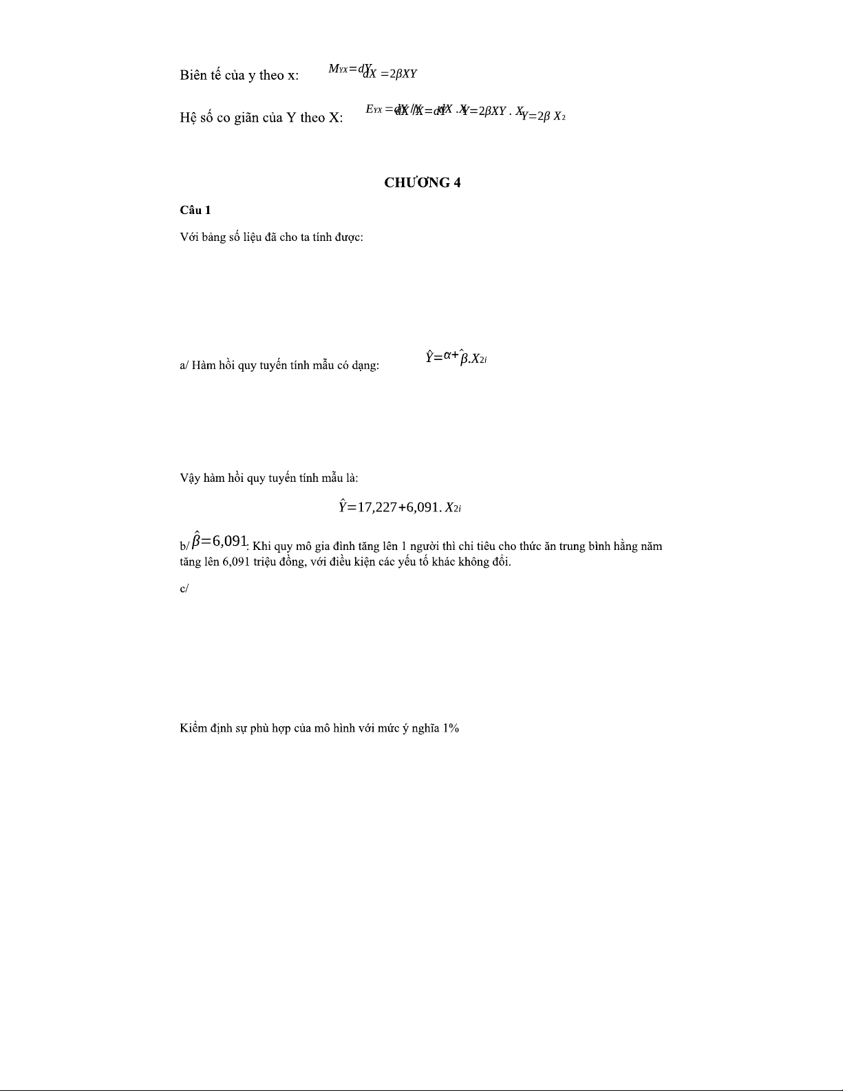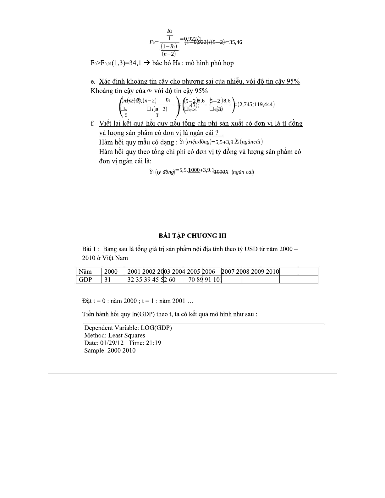 BT-KTL - Bài Tập Kinh Tế Lượng Chương II: Mô Hình Hồi Quy và Phân Tích