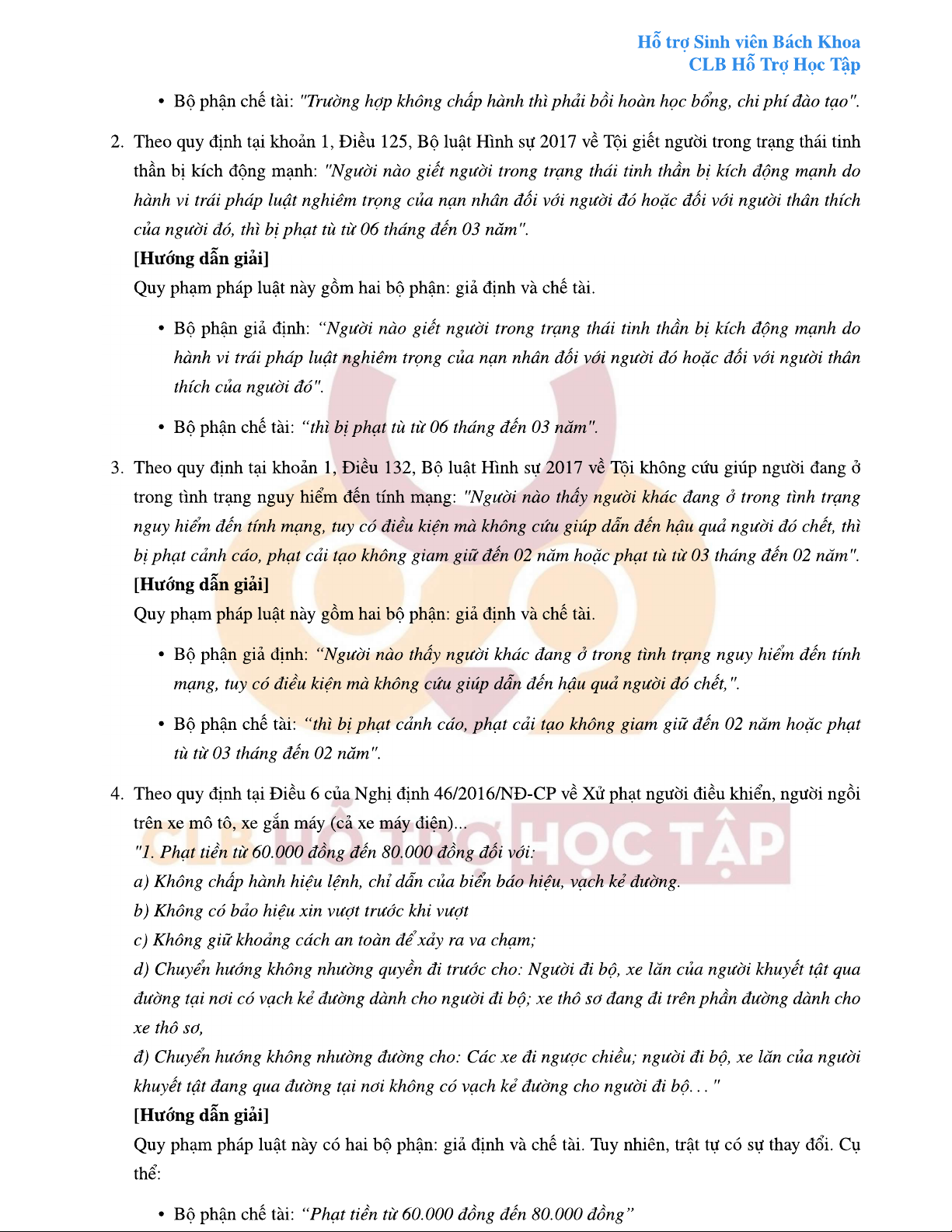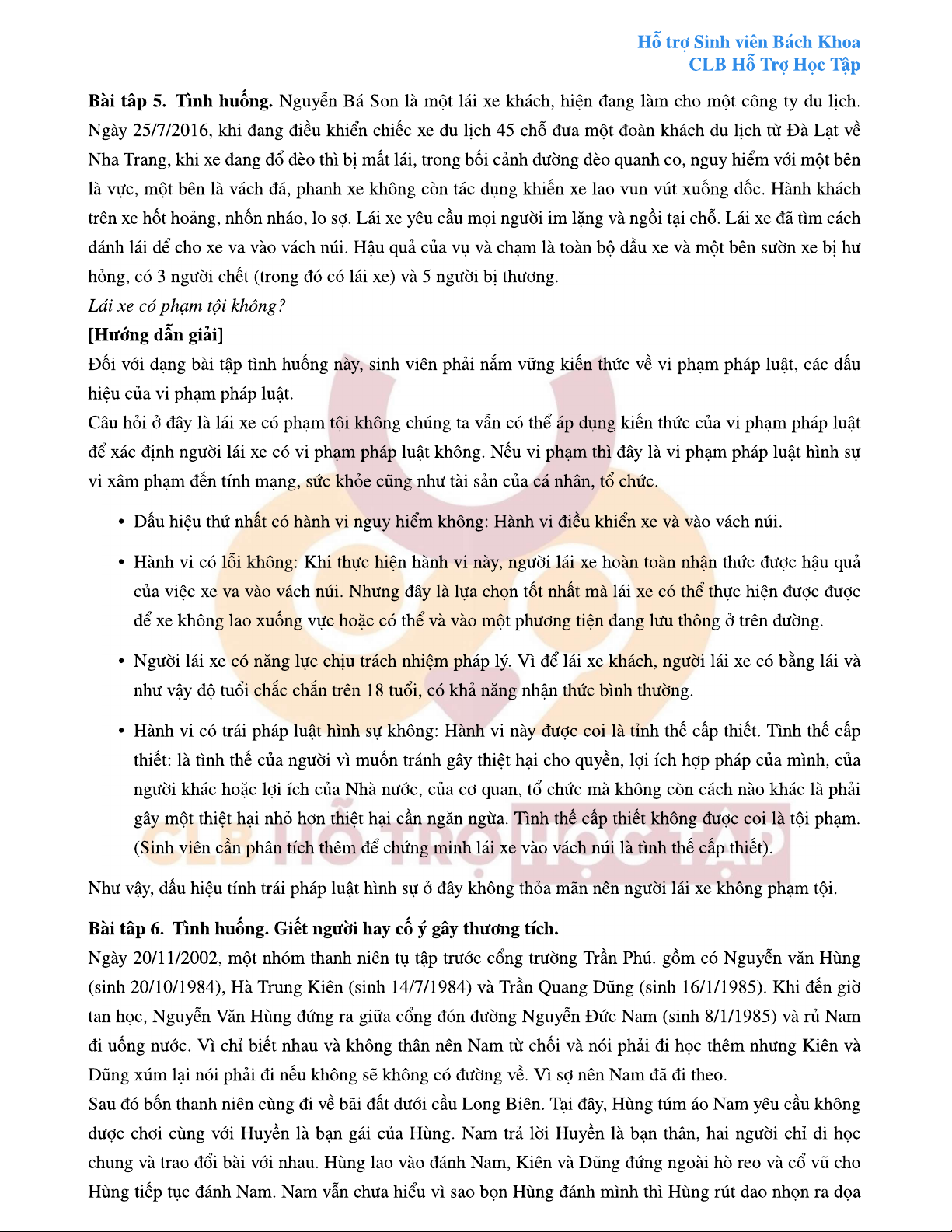 Bài tập tham khảo - Pháp luật đại cương | Đại học Bách Khoa Hà Nội
