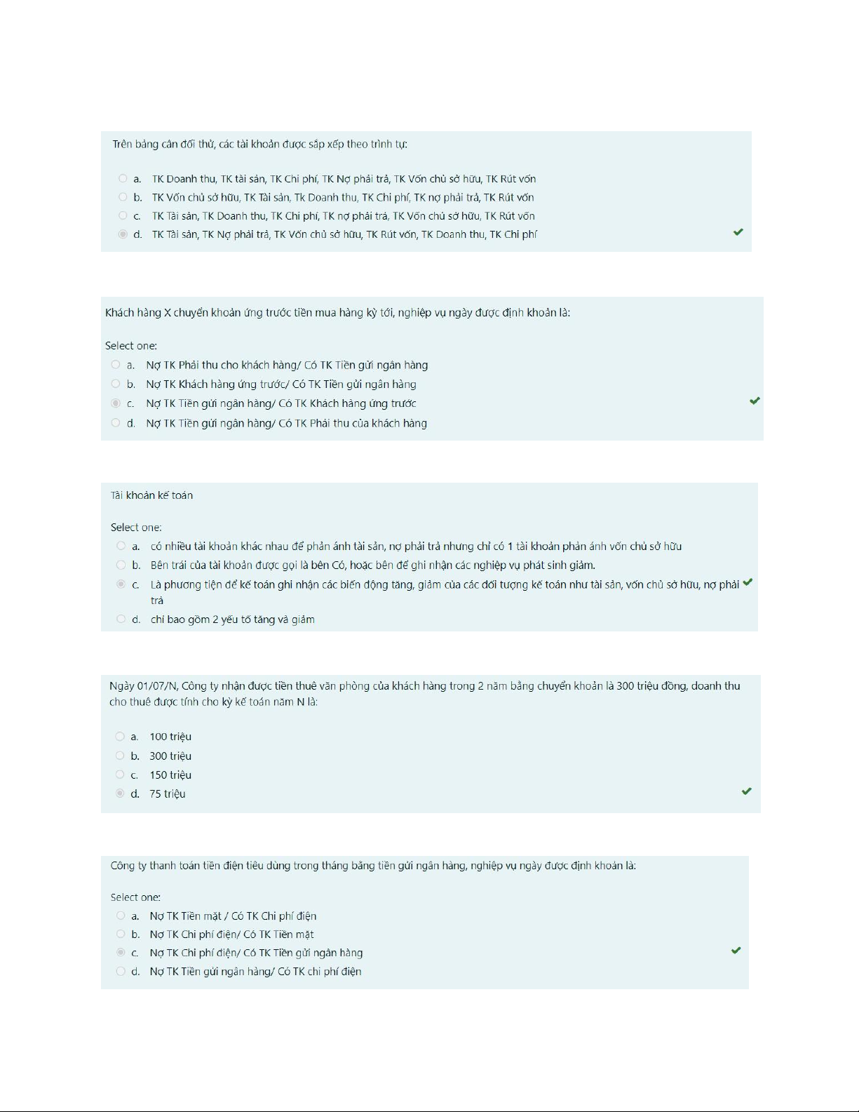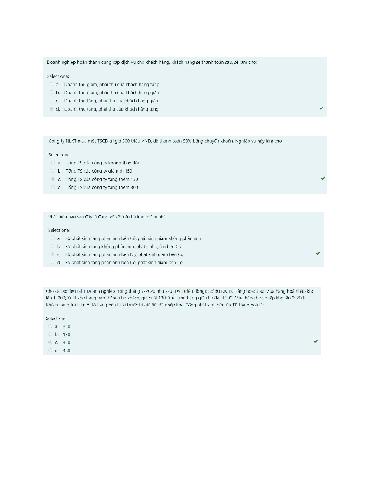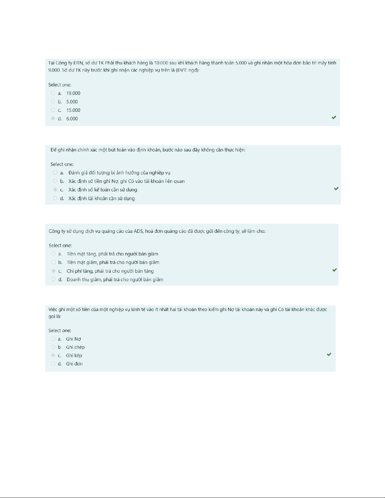 BT TN chương 2 - Bài tập trắc nghiệm Nguyên lý kế toán