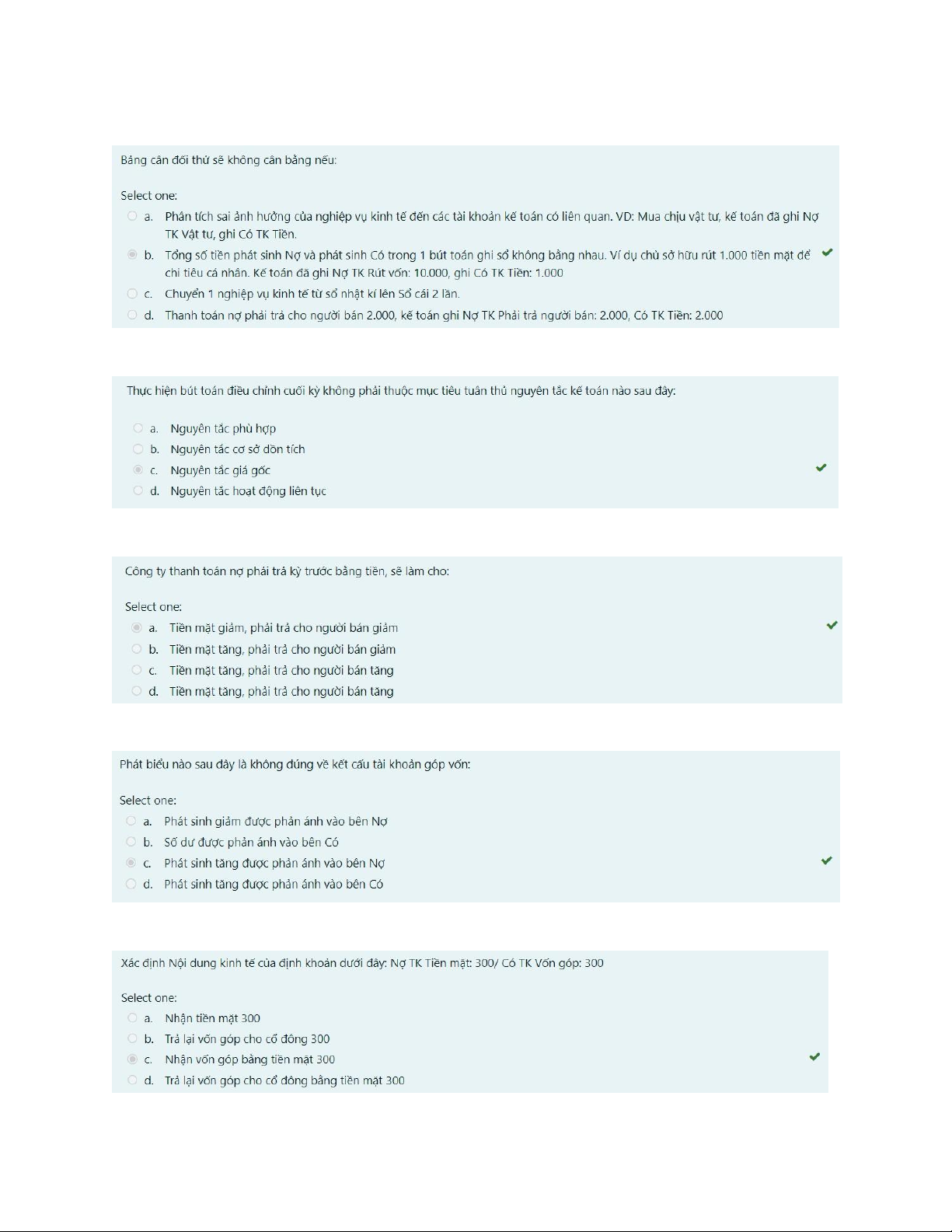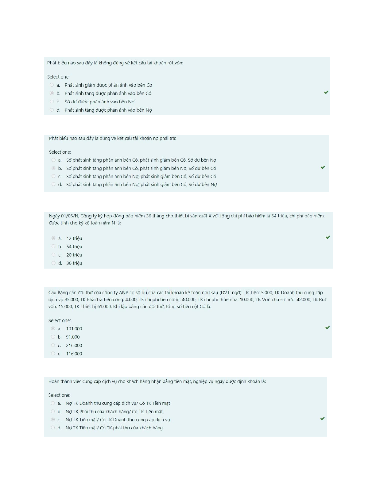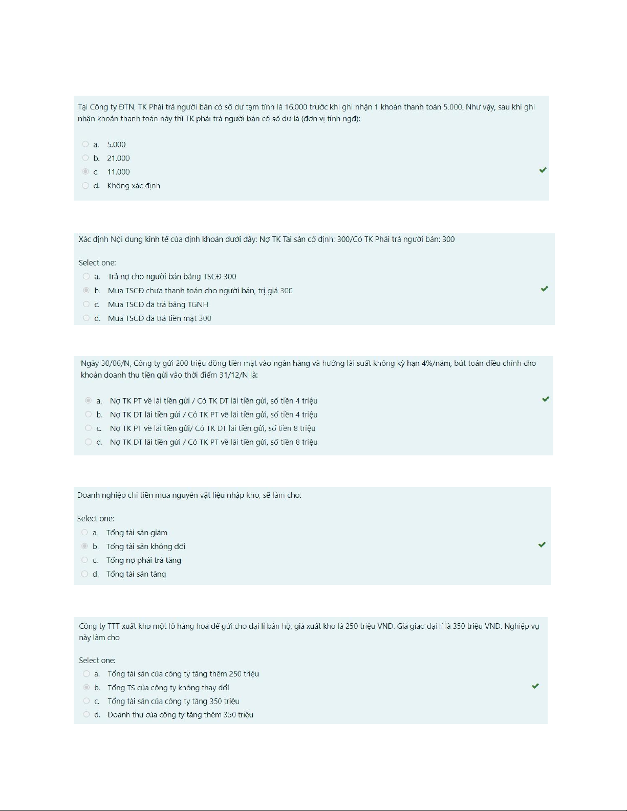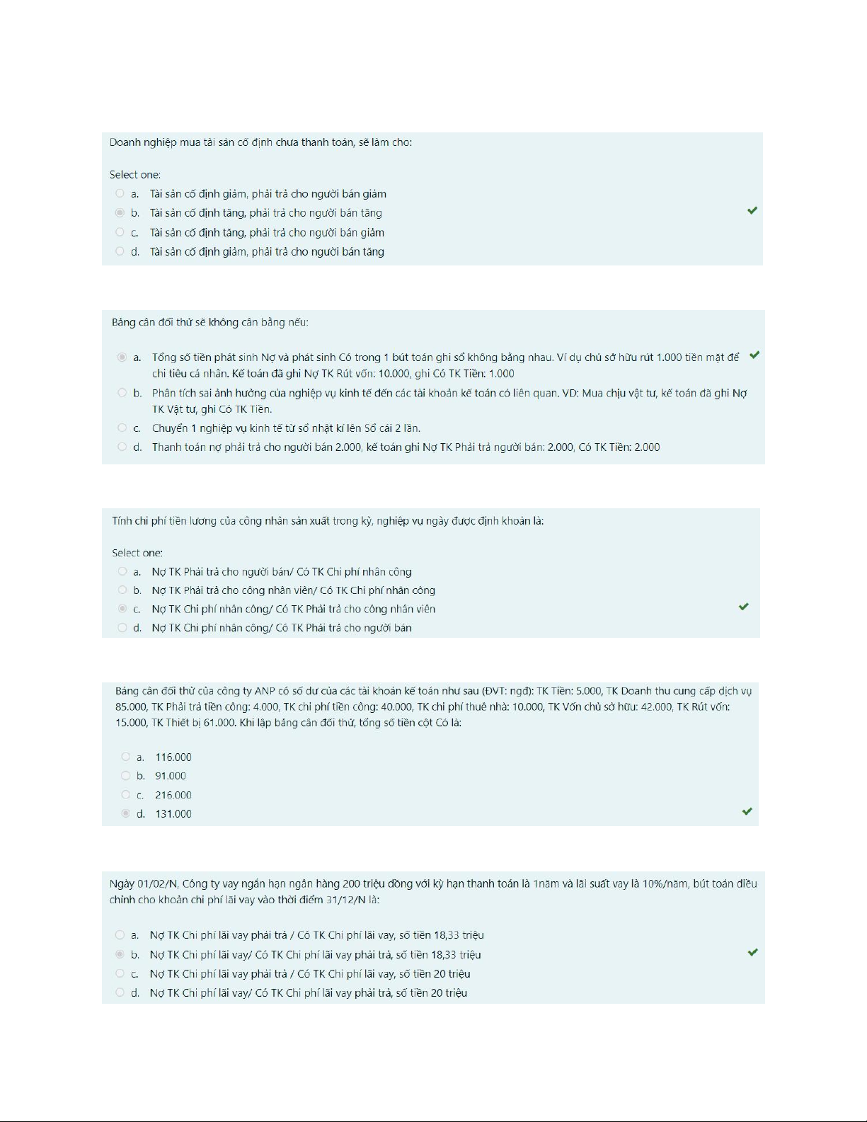 BT TN chương 2 - Bài tập trắc nghiệm Nguyên lý kế toán