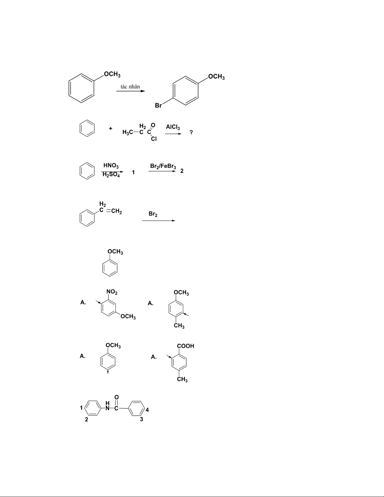 7. Thực hiện phản ứng với Br2 xúc ác FeBr3, phản ứng định hướng ào vị trí nào sau đây