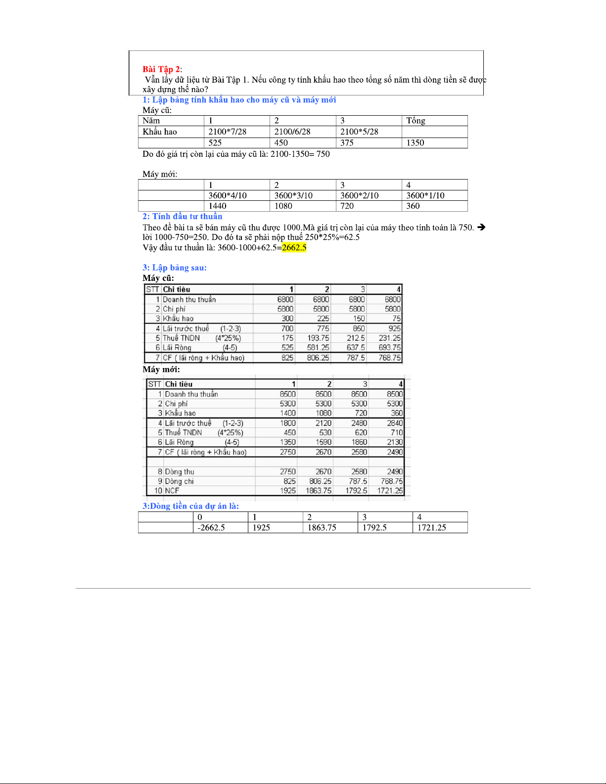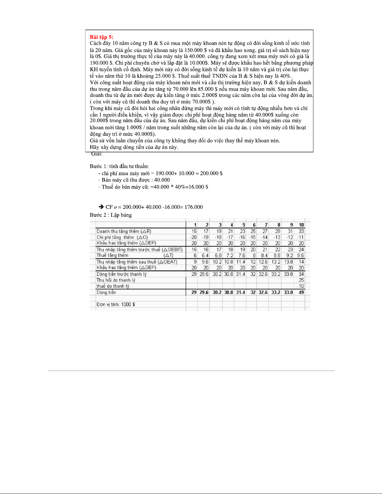 BT và Dòng Tiền - Bài Tập Thực Hành và Phân Tích